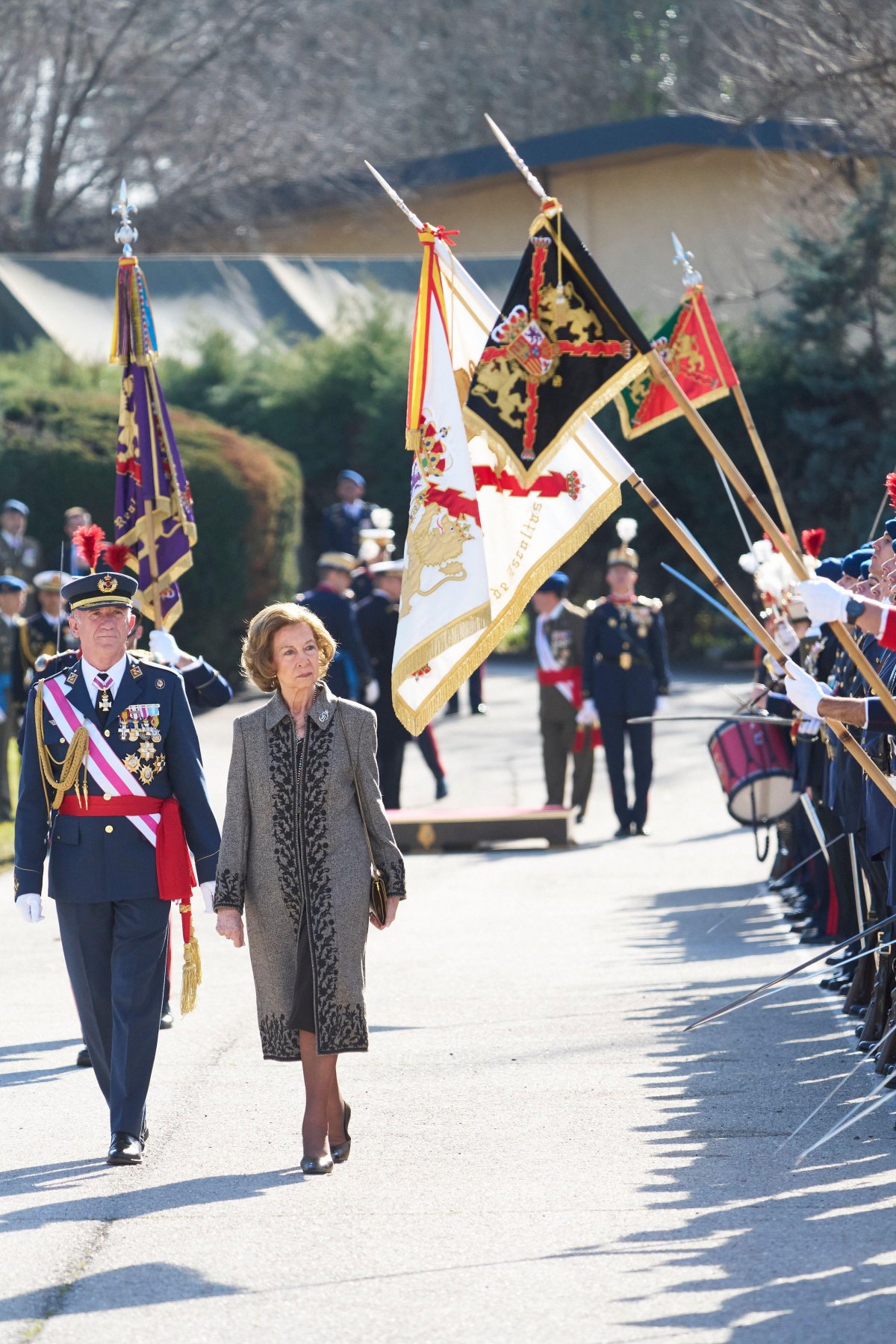 On Friday, Queen Sofia of Spain made an elegant appearance in El Pardo to attend a military ceremony at the headquarters of the Guardia Real (the Royal Guard). The ceremony saw guardsmen making an oath of allegiance to the Spanish flag.