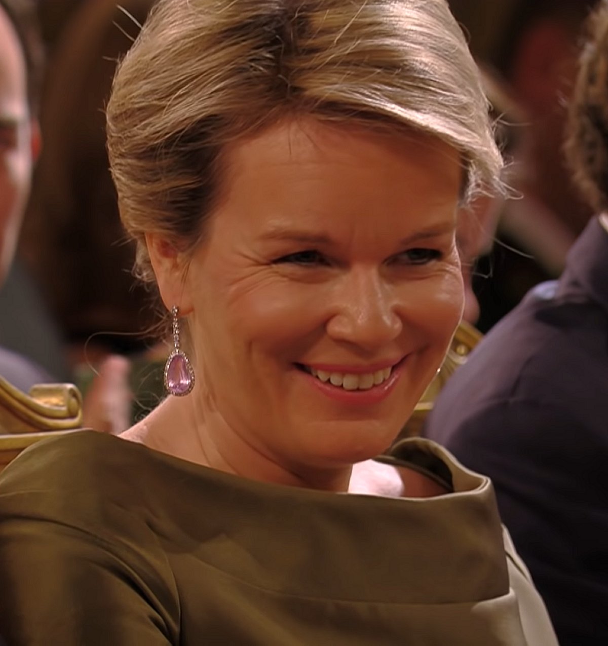 In November 2018, Queen Mathilde joined the King and other members of the Belgian royal family for a concert to celebrate the centenary of the armistice that ended World War I. She sparkled in a new pair of diamond earrings with large pink gemstone drops and a matching ring, worn on her right hand.