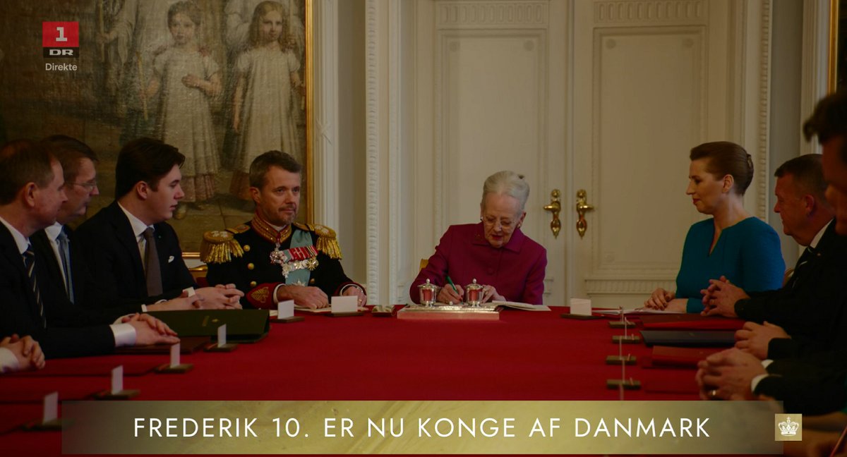 As part of the ceremony, the Prime Minister announced three times that Queen Margrethe II had abdicated, declaring, “Long live King Frederik X!”