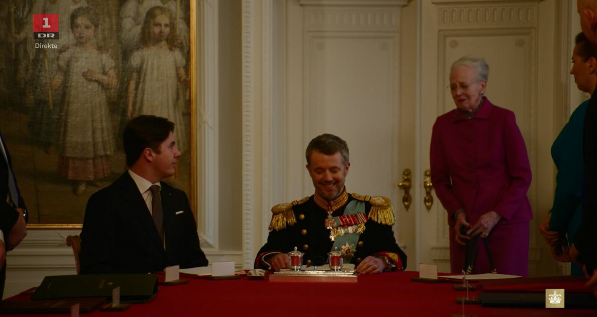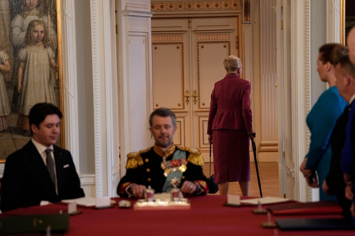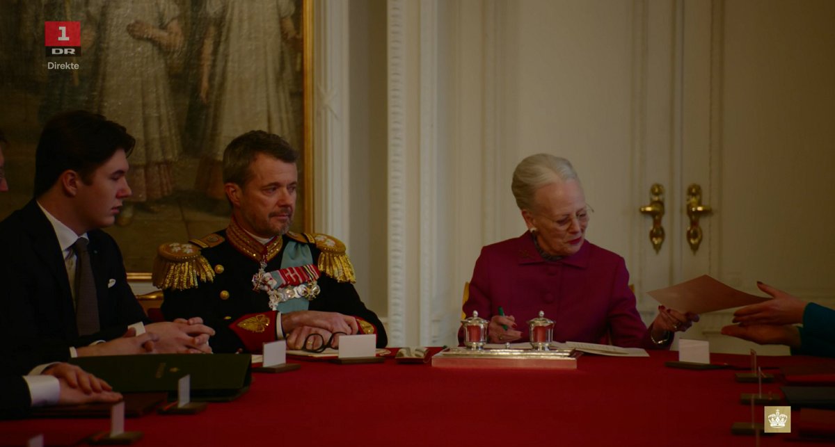 Queen Margrethe II was joined by Crown Prince Frederik and his elder son, Prince Christian, for her final Council of State meeting as monarch. She signed the instrument of abdication during the meeting, immediately making her son the King of Denmark.
