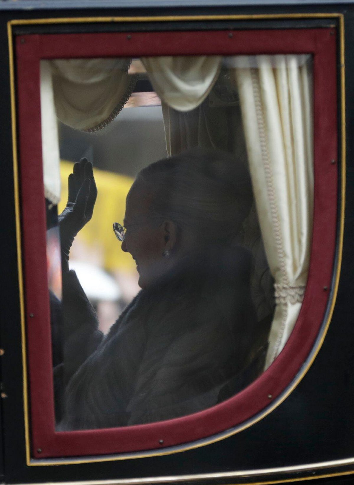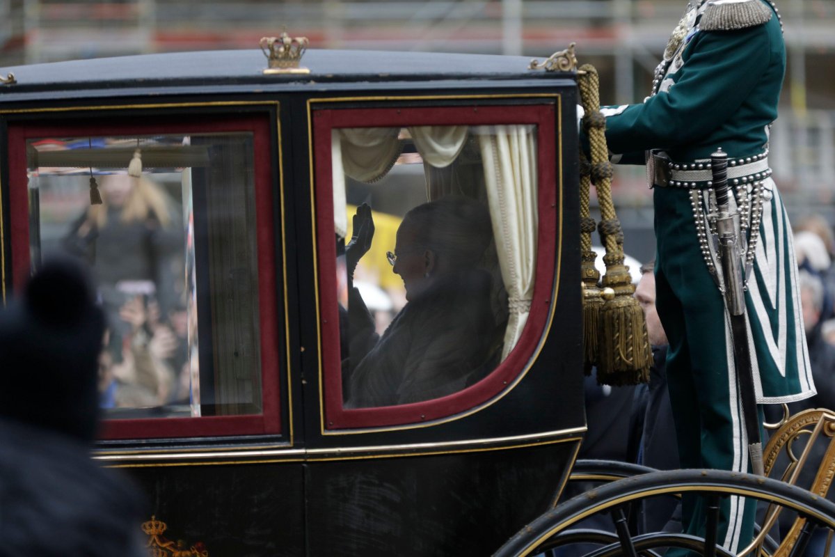 She departed Christiansborg by car to drive back to her home in the Amalienborg complex.
