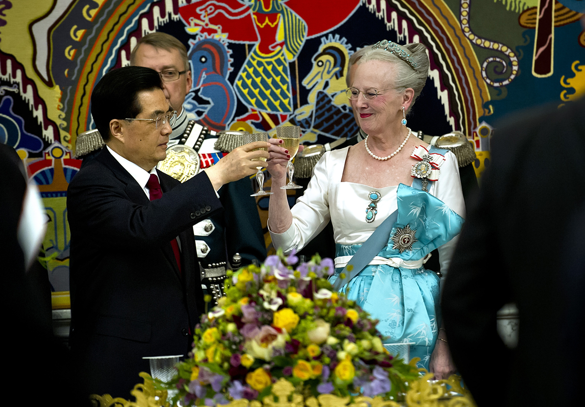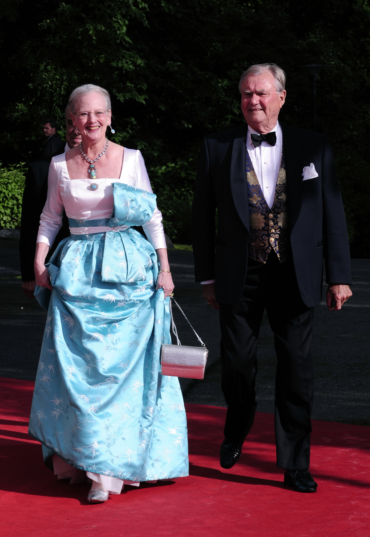 Queen Margrethe inherited the turquoises from her mother, Queen Ingrid, who was Princess Margaret’s only daughter. She wore them for decades, and she clearly delighted in arranging the pieces in different configurations. Above, for example, she uses two pieces from the set as a large pendant on a diamond necklace in Stockholm in 2010.