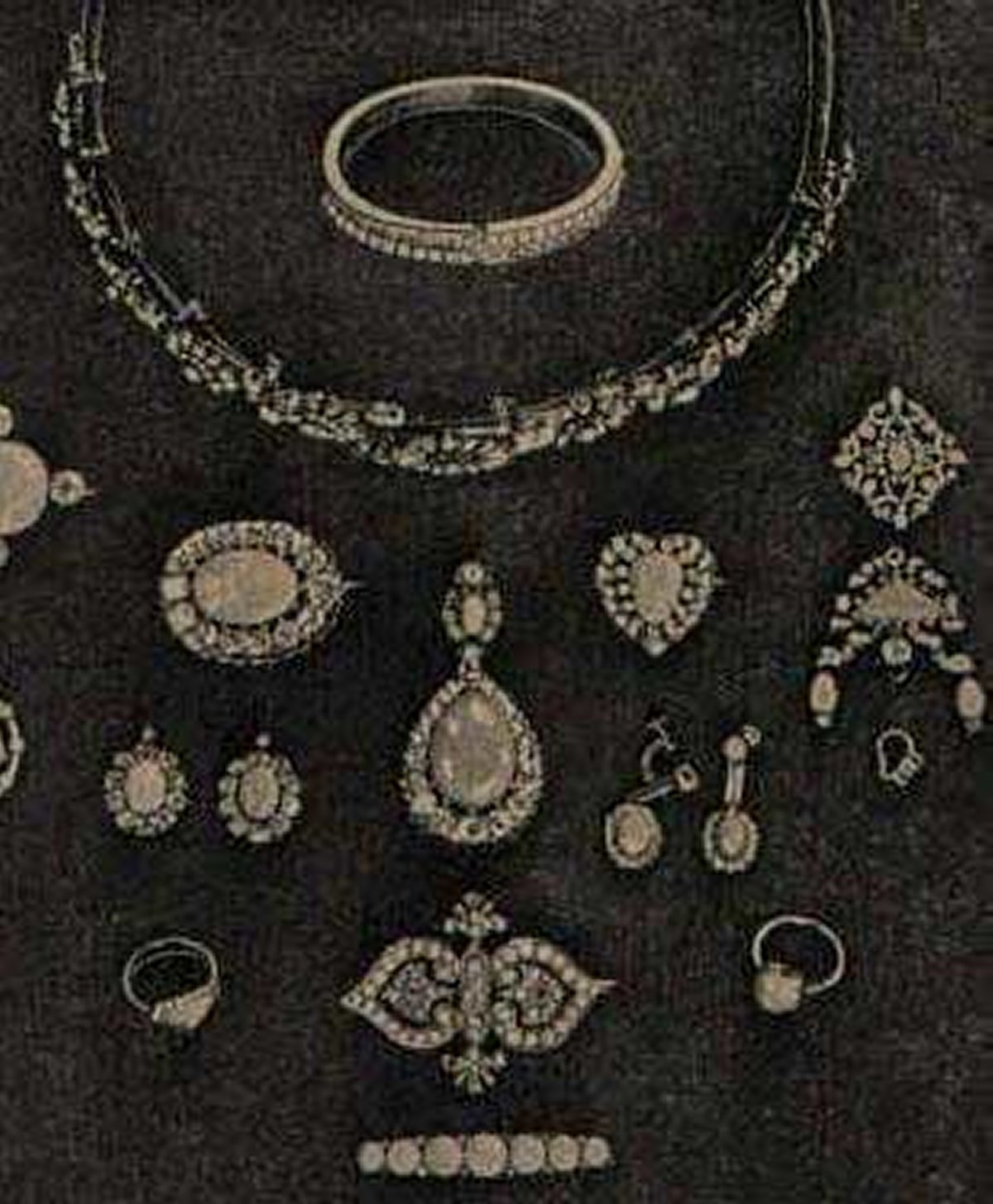 The jewels, pictured above in an early twentieth-century archive photograph, belonged to Margrethe’s grandmother, the British-born Princess Margaret of Connaught. Her turquoise collection included numerous pieces: the earrings and brooch/pendant worn by Mary at the Abbey, plus other brooches, rings, and even a bandeau-style tiara.