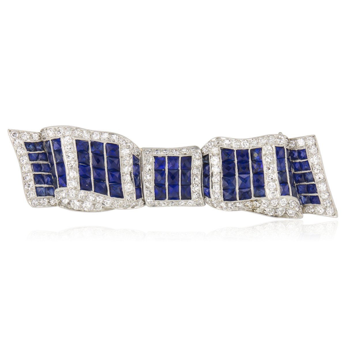 While many of the jewelry pieces in the auction are modern, there are some fantastic antique jewels included as well. Among them is this diamond and sapphire ribbon brooch, made in France around 1935. It’s a signed piece from Marcus & Co., a jewelry firm founded in Manhattan by a German artist who had worked for the King of Saxony’s court jeweler before emigrating. The Art Deco brooch is expected to bring between $6,000-8,000 USD.
