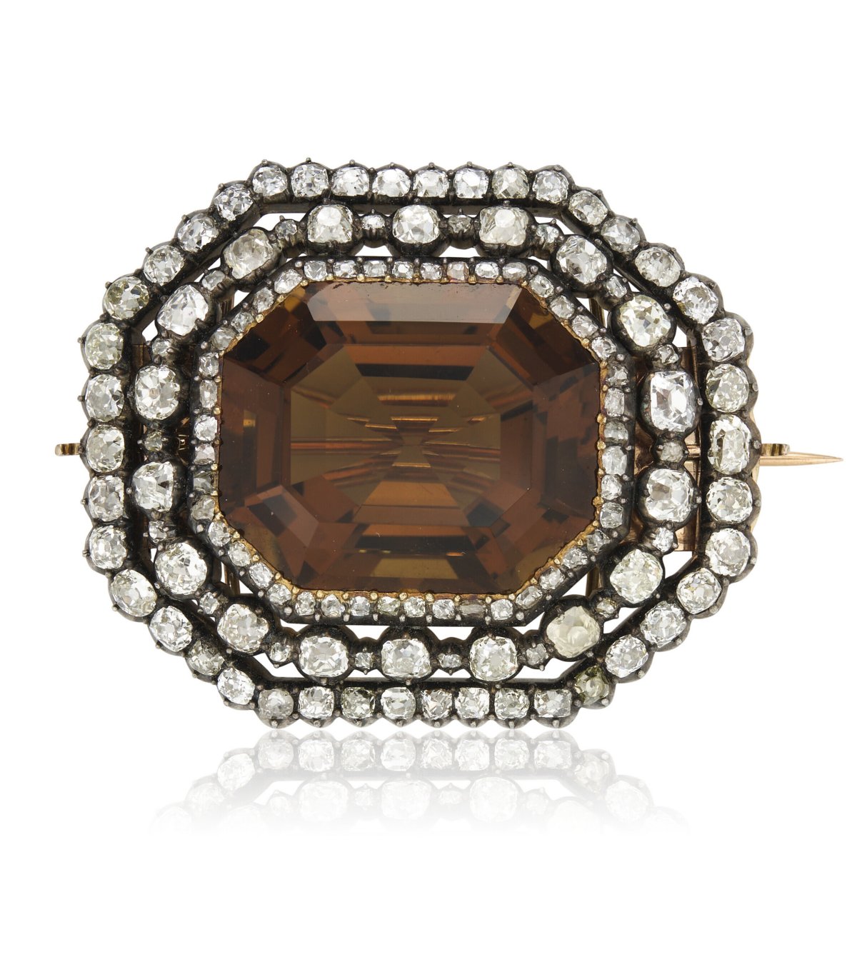 But because I’m me, and you all know my taste pretty well, you won’t be surprised that this is the brooch that I liked most from the selection offered. It’s a classic nineteenth-century diamond cluster brooch with a smoky brown citrine as its centerpiece. (It reminds me a lot of this similar royal example.) The lot notes estimate that it was made around 1860, and the citrine measures north of 33 carats in size. The estimate for the brooch is set between $3,000-5,000 USD.