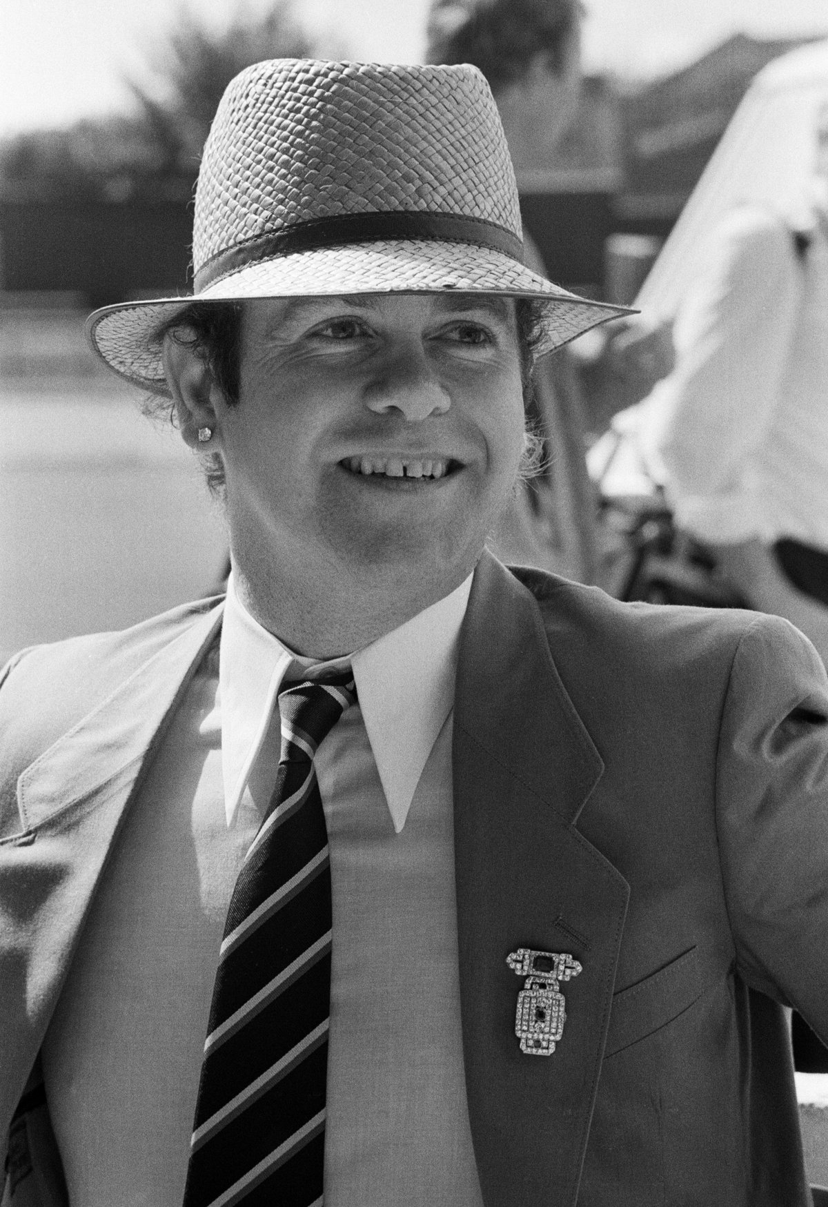 Sir Elton being Sir Elton, though, he hasn’t needed a red carpet as an excuse to pull out a fabulous piece of jewelry. Here’s a snap of him wearing a beautiful Art Deco brooch on a football pitch during his tenure as chairman of Watford FC in the 1980s!