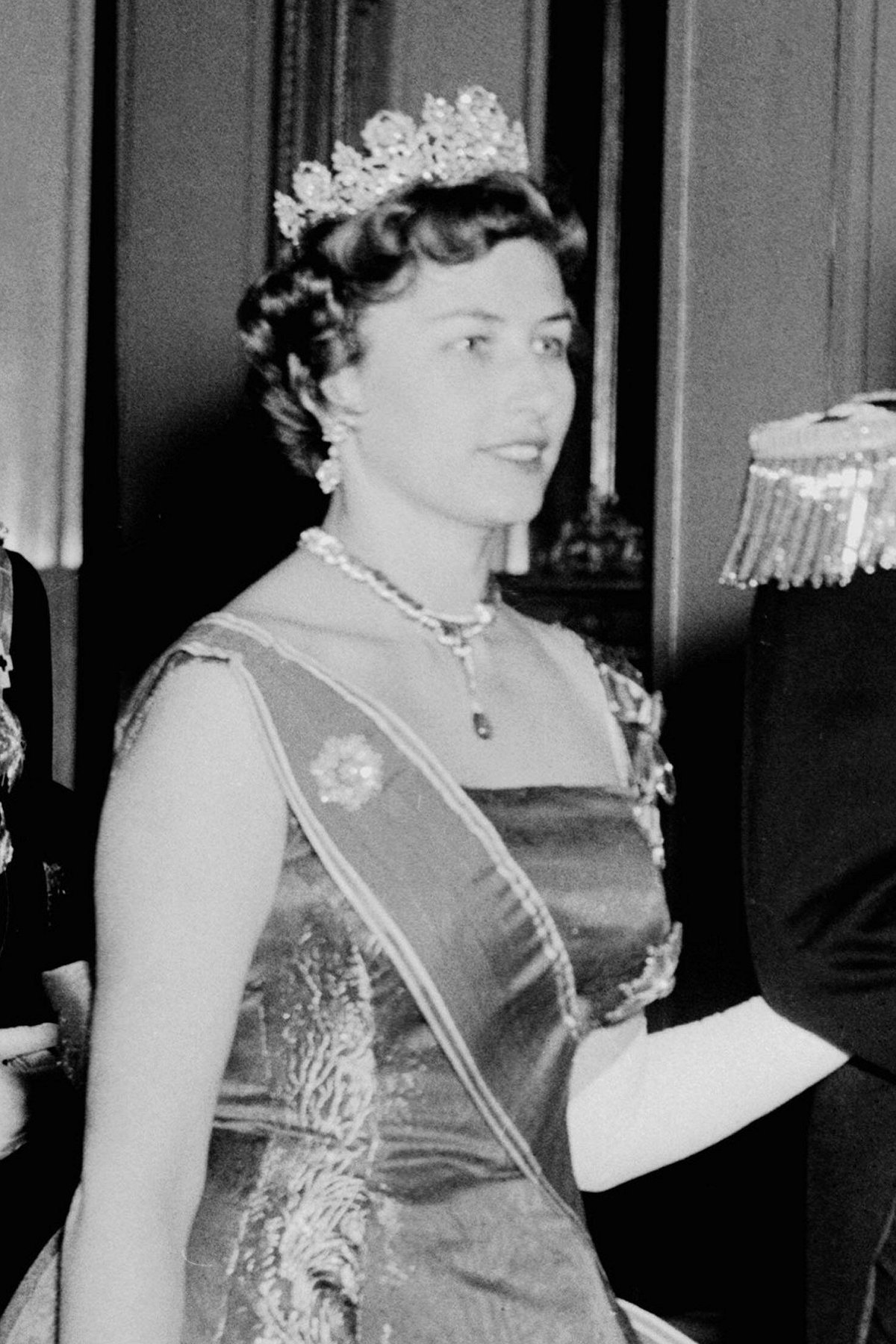 The early death of Princess Astrid’s mother, Crown Princess Märtha, meant that Astrid was sometimes called upon to serve as Norway’s first lady at important royal events. When King Frederik IX and Queen Ingrid of Denmark made a state visit to Norway in February 1960, Astrid filled the role of Norway’s most senior royal lady. Accordingly, she wore some of her mother’s grandest tiaras and jewels for the gala events of the visit.