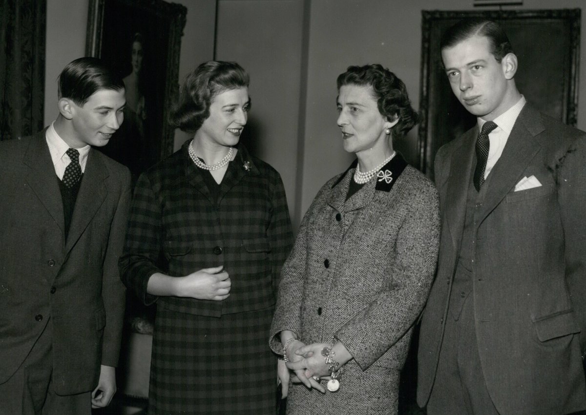 The emerald shamrock brooch, however, took another path. Queen Mary passed it along to Princess Marina of Greece and Denmark, who was married to Mary’s fourth son, Prince George, Duke of Kent. Before his untimely death in a plane crash, George and Marina had three children: Prince Edward, the present Duke of Kent; Princess Alexandra, the Hon. Lady Ogilvy; and Prince Michael of Kent. All three are pictured with their mother in the photograph above, which was taken at Kensington Palace in December 1957 to mark Alexandra’s upcoming 21st birthday.