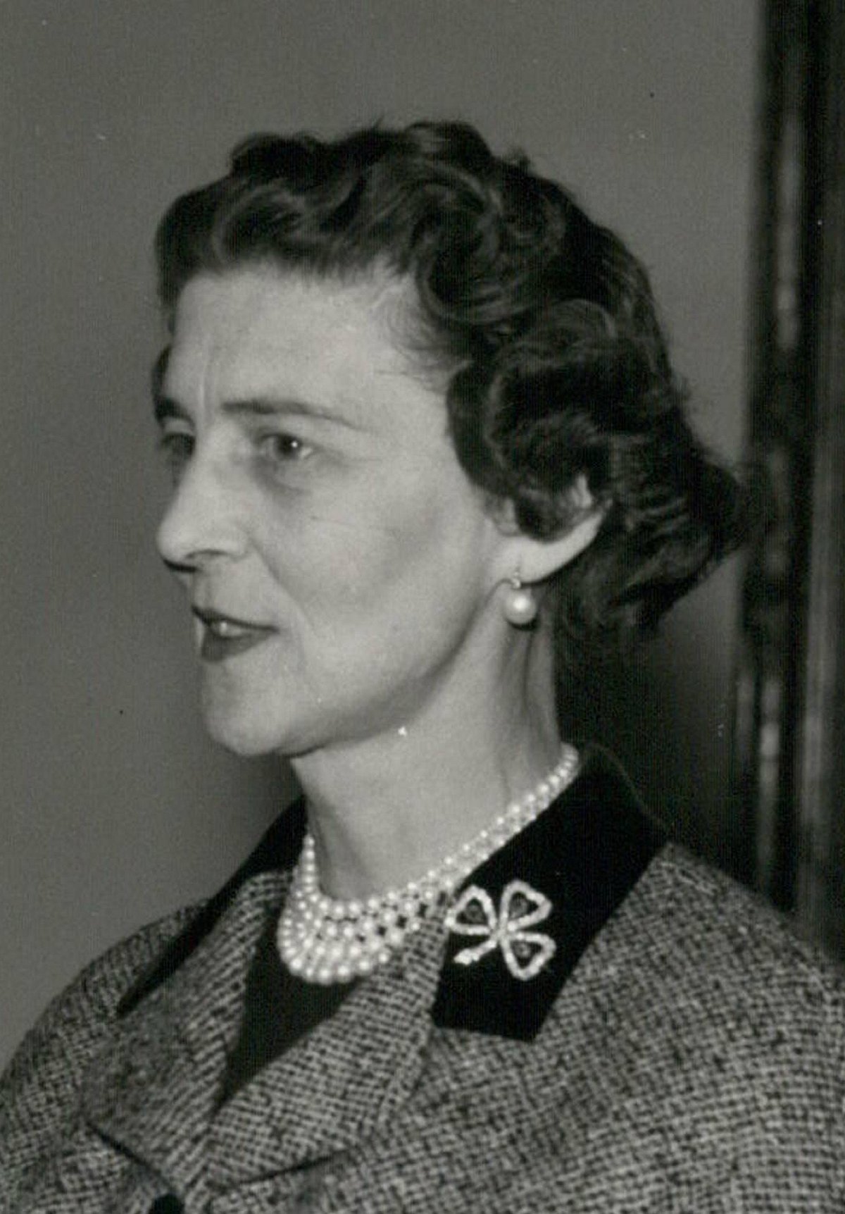 Princess Marina wears Queen Mary’s emerald and diamond shamrock brooch on the collar of her coat in the family portrait. Even in black and white, the emeralds manage to stand out against the black velvet fabric of the collar.