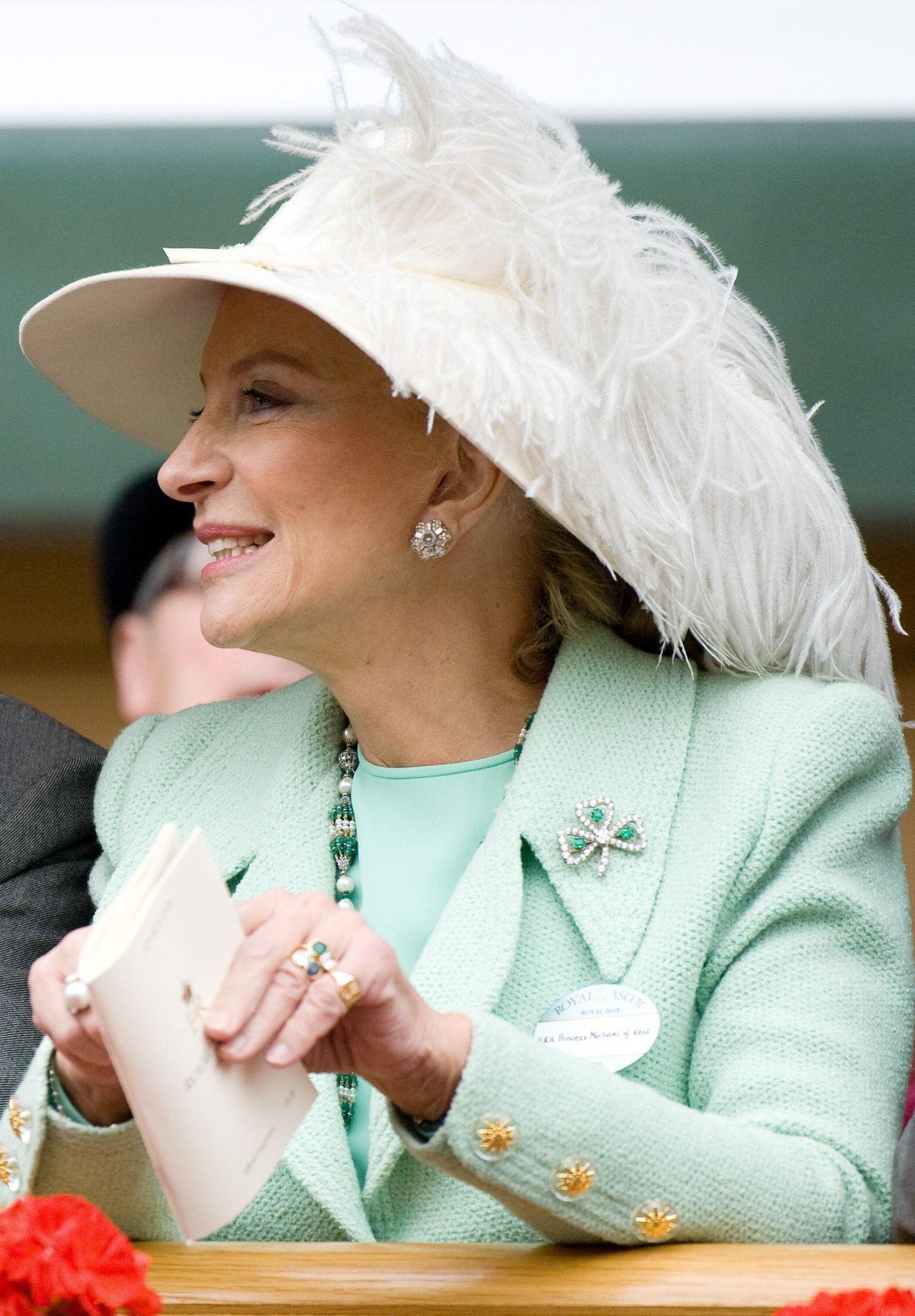 From Marina, the brooch was passed down to Prince Michael, her second son. It still belongs to Michael and his wife, Marie-Christine, today. Above, Princess Michael wears the brooch on a mint-green coat at Royal Ascot in the spring of 2011.