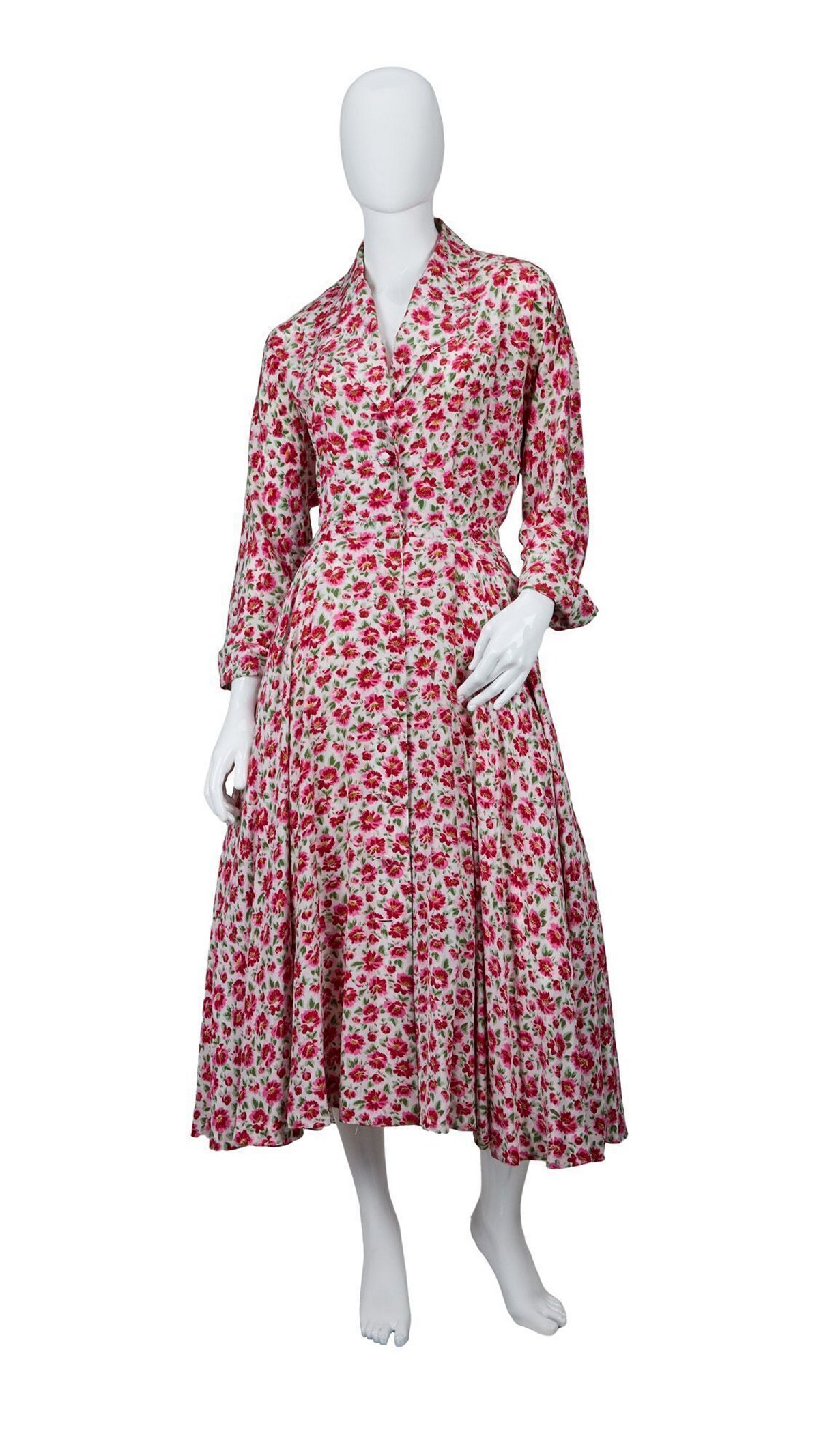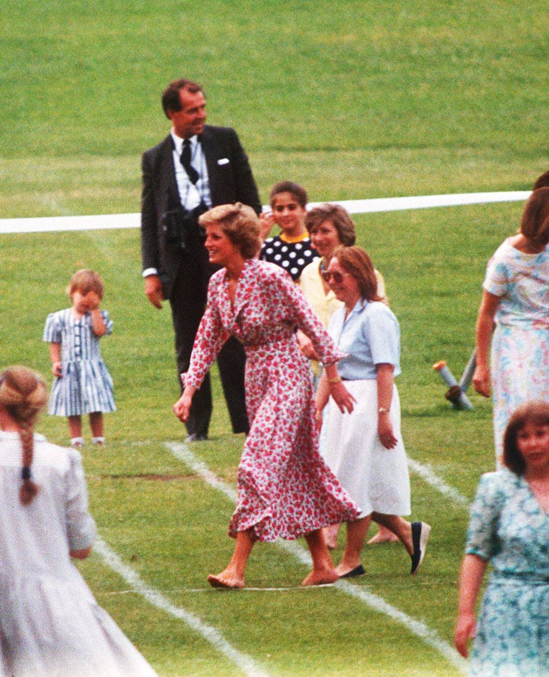 The auction estimate may seem high for a day dress rather than an evening gown, but Diana wore the dress on several moments that were more personal than official. On June 21, 1988–Prince William’s sixth birthday–Diana attended his school sports day at Richmond Stadium. Wearing the floral dress, she won the 50-yard dash parents’ race in her bare feet. Four years later, she was also photographed wearing the dress as she dropped Prince Harry off at his school in Notting Hill.