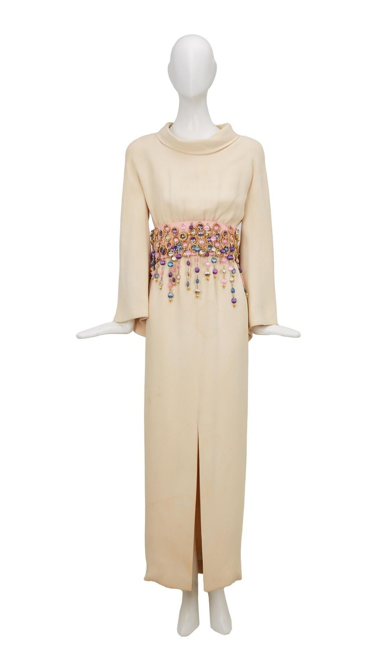 The dress sold at Christie’s in London in July 1997 for $25,300. Like the spangled Murray Arbeid gown, it was purchased by Pat Kerr Tigrett and later loaned to Kensington Palace for the Diana: Her Fashion Story exhibition. The estimate for the gown’s sale at Julien’s is set at between $200,000-$400,000.