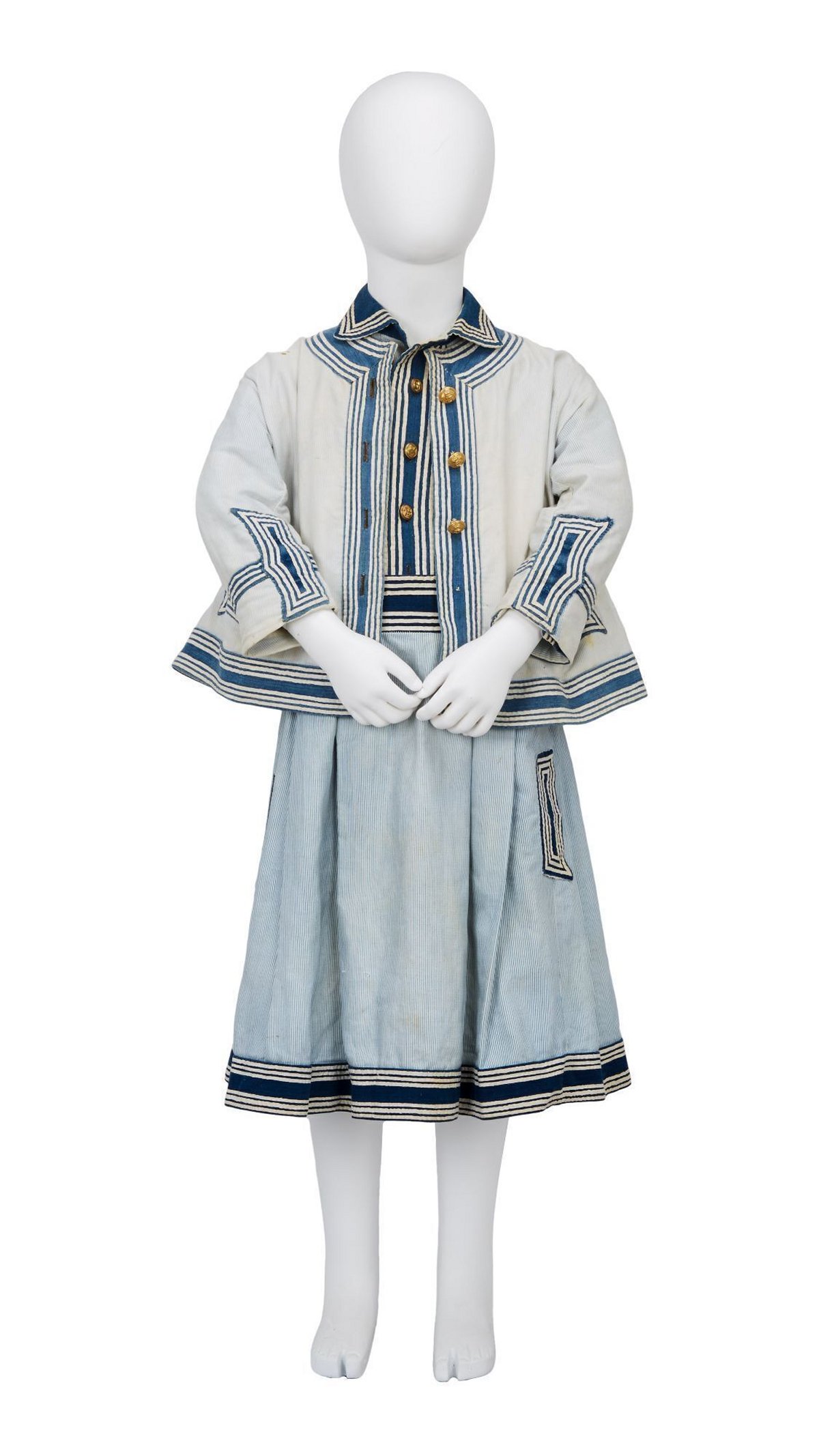 The auction at Julien’s also includes a charming little sailor dress and jacket that likely belonged to Edward and Alexandra’s second daughter, Princess Victoria. The outfit dates to 1872, the year that Toria turned four, and is marked with the initials “PV.” The ensemble was later owned by the Roberts family. John Roberts was the inspector of Windsor Castle during Queen Victoria’s reign, and his wife, Keziah, worked in the royal nursery. Their daughter, Mary Ann, was a dressmaker who made clothes for members of the royal family, including Princess Victoria. Members of Mary Ann’s family sold the sailor suit at Christie’s in February 1987. This time around, Julien’s expects the outfit to sell for $500-$700.