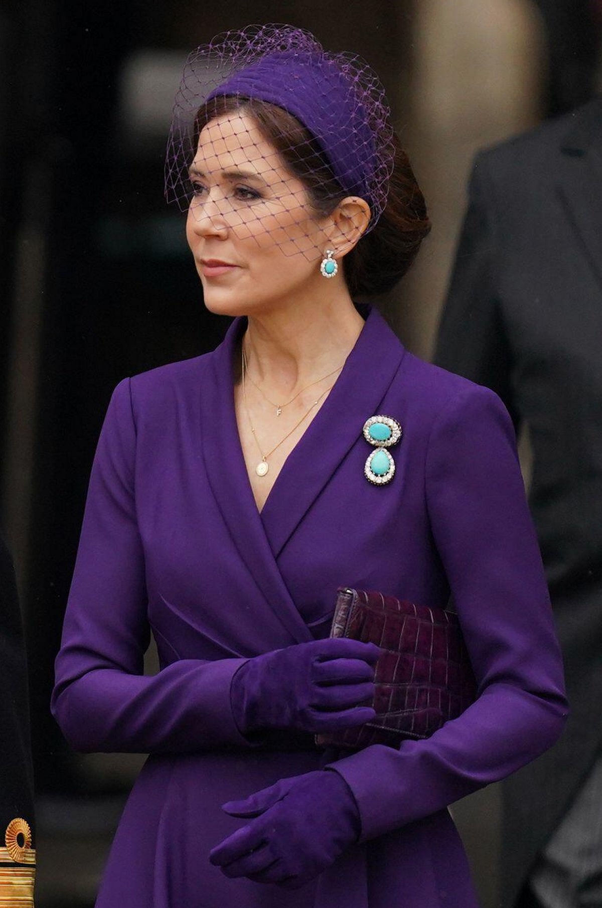 Crown Princess Mary of Denmark was absolutely beautiful in a navy-purple ensemble, punctuated by bright heirloom turquoises. She had received the jewels as a 50th birthday gift from her mother-in-law, Queen Margrethe II, in February 2022. But the turquoises have an even more special provenance: they’re said to have originally been owned by Catherine the Great. She’s an ancestor of many of the royals who were present for the coronation, including both King Charles III and Crown Prince Frederik of Denmark.