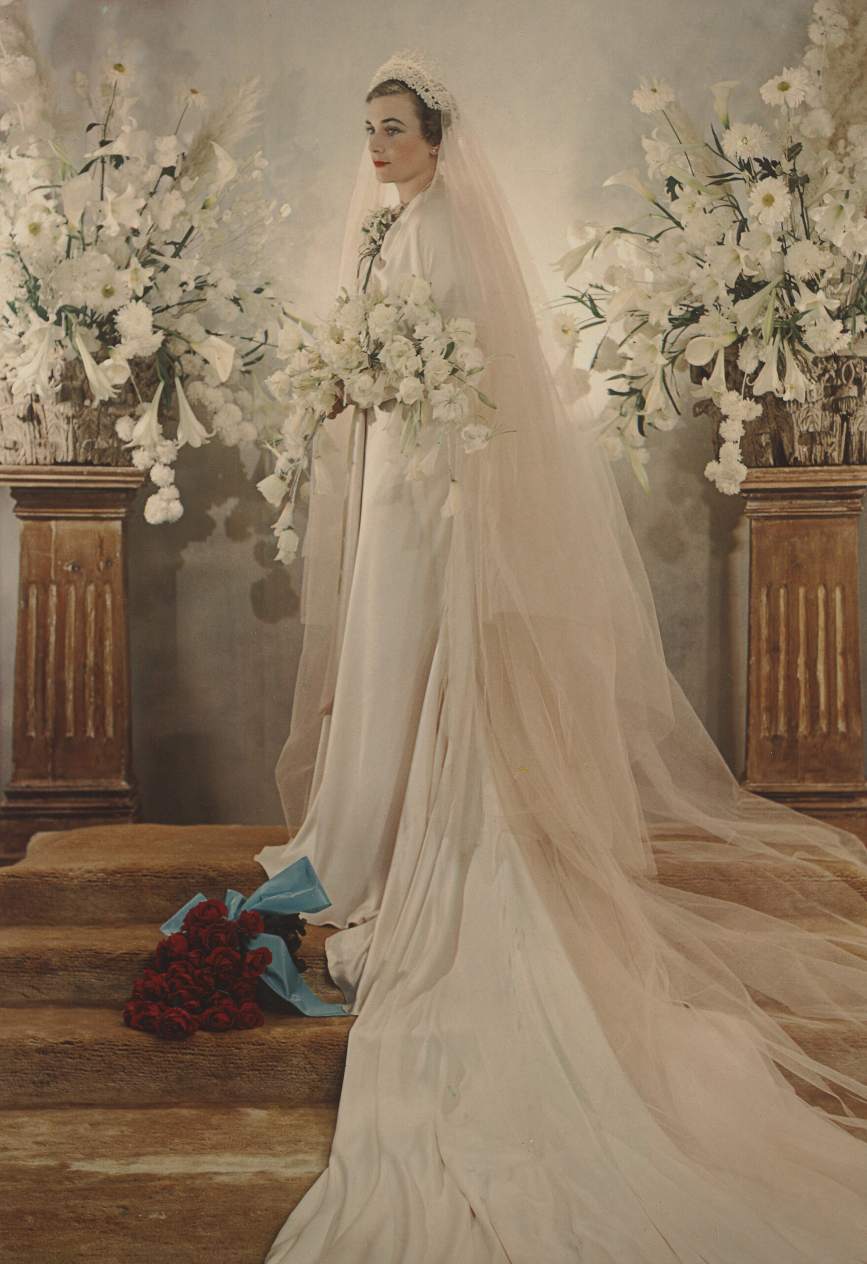 We’ll take a little trip through royal jewelry history in the exhibition preview images, starting with the earliest surviving photographic print of a member of the Royal Family produced in color. This picture isn’t colorized–it’s an actual color photograph from the wedding of the Duke of Gloucester and Lady Alice Montagu Douglas Scott in November 1935. Madame Yevonde, who was a pioneer in the development of color photography, took this image of Princess Alice in her wedding gown before the ceremony so that it could be wired to news organizations around the globe to include in their coverage of the wedding day.