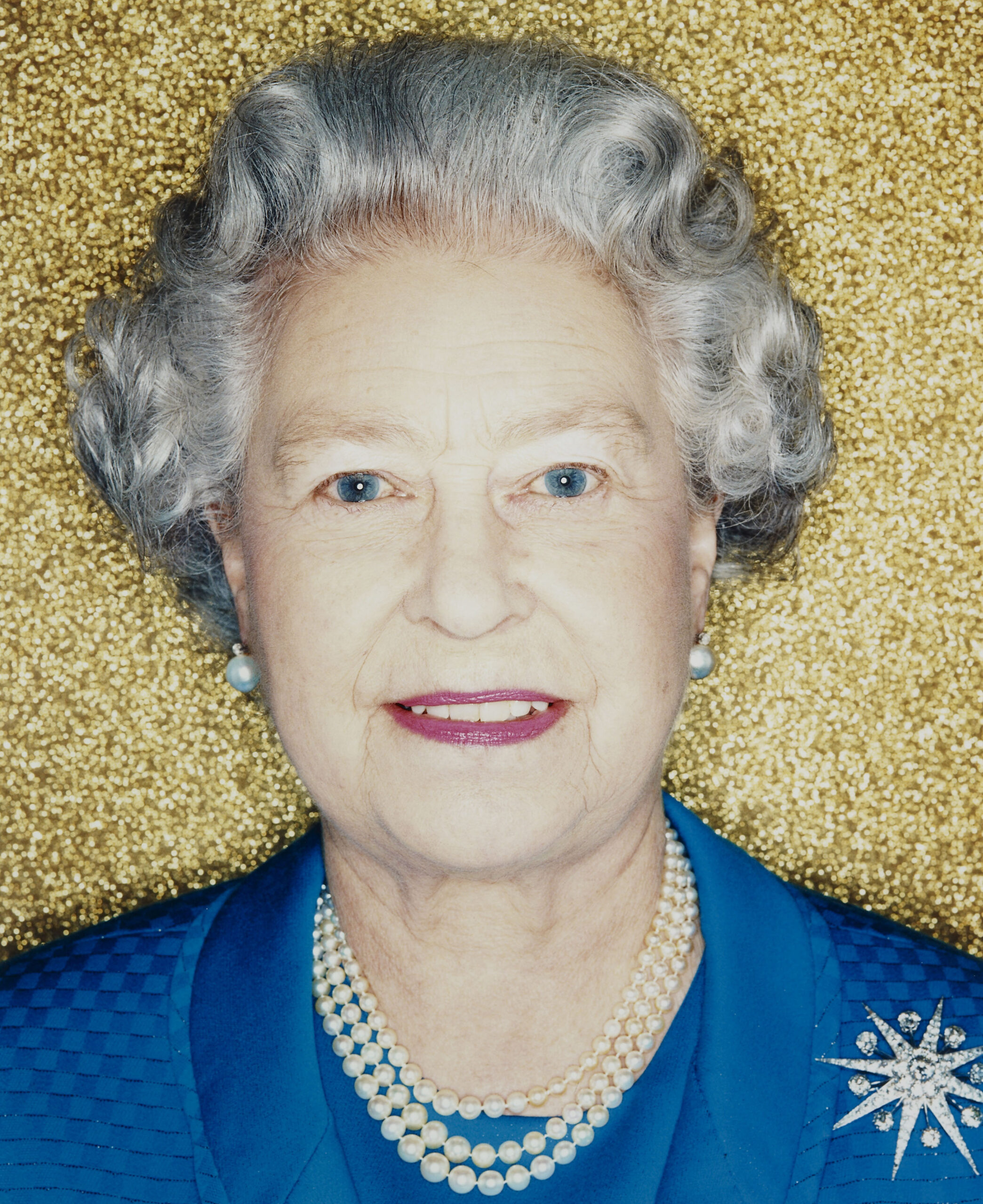 Two more modern photographic portraits of Elizabeth II are also included, both taken just before her own Golden Jubilee in 2002. This image by Rankin shows her wearing her usual daytime pearls with the Pearl Trefoil Brooch.