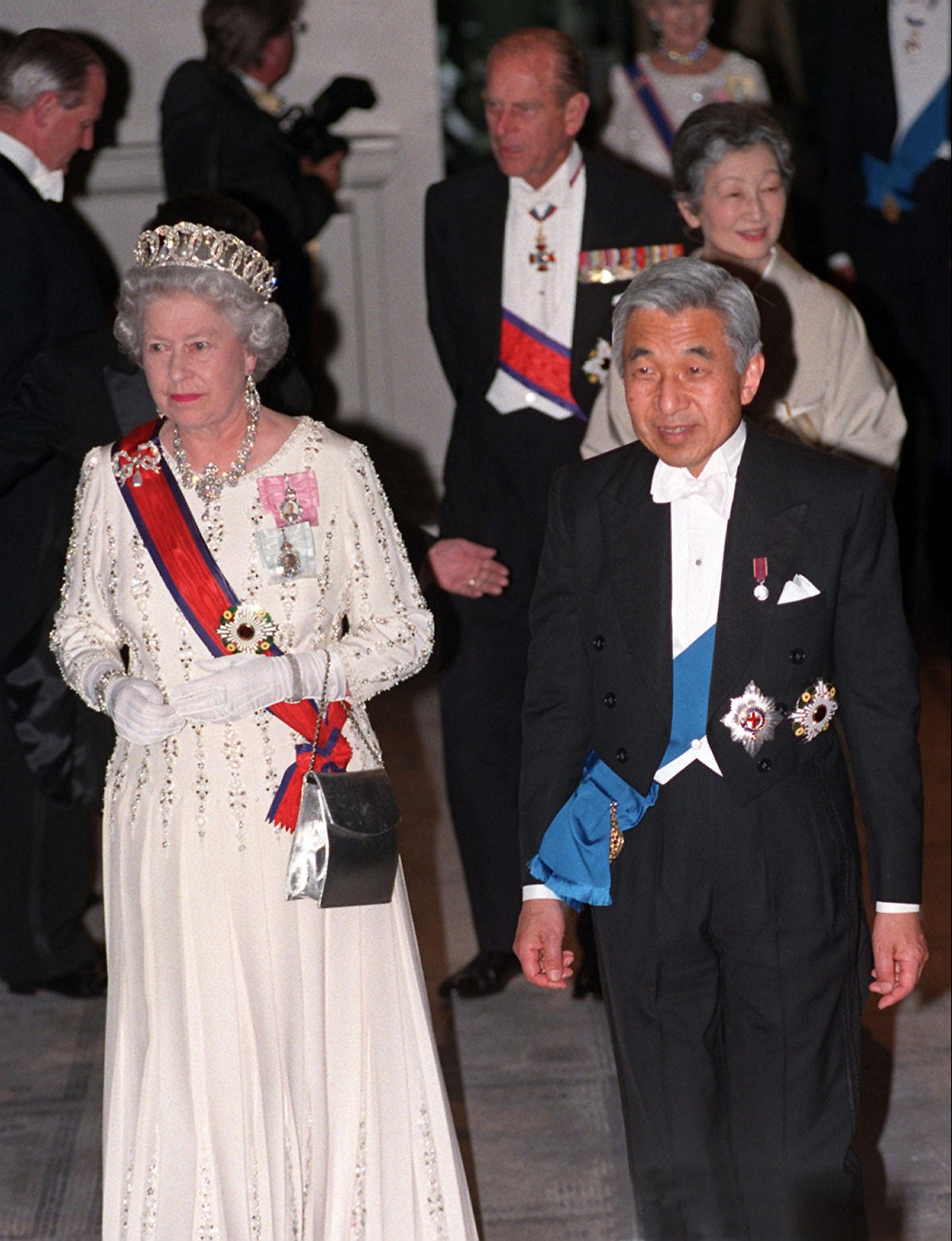 Nearly three decades later, another generation of the Japanese imperial family headed to London for a state visit. Emperor Akhito, son of Emperor Hirohito and Empress Nagako, arrived in Britain with his wife, Empress Michiko, for the start of the visit on May 26, 1998. That evening, the Queen hosted a state banquet in their honor at Buckingham Palace.