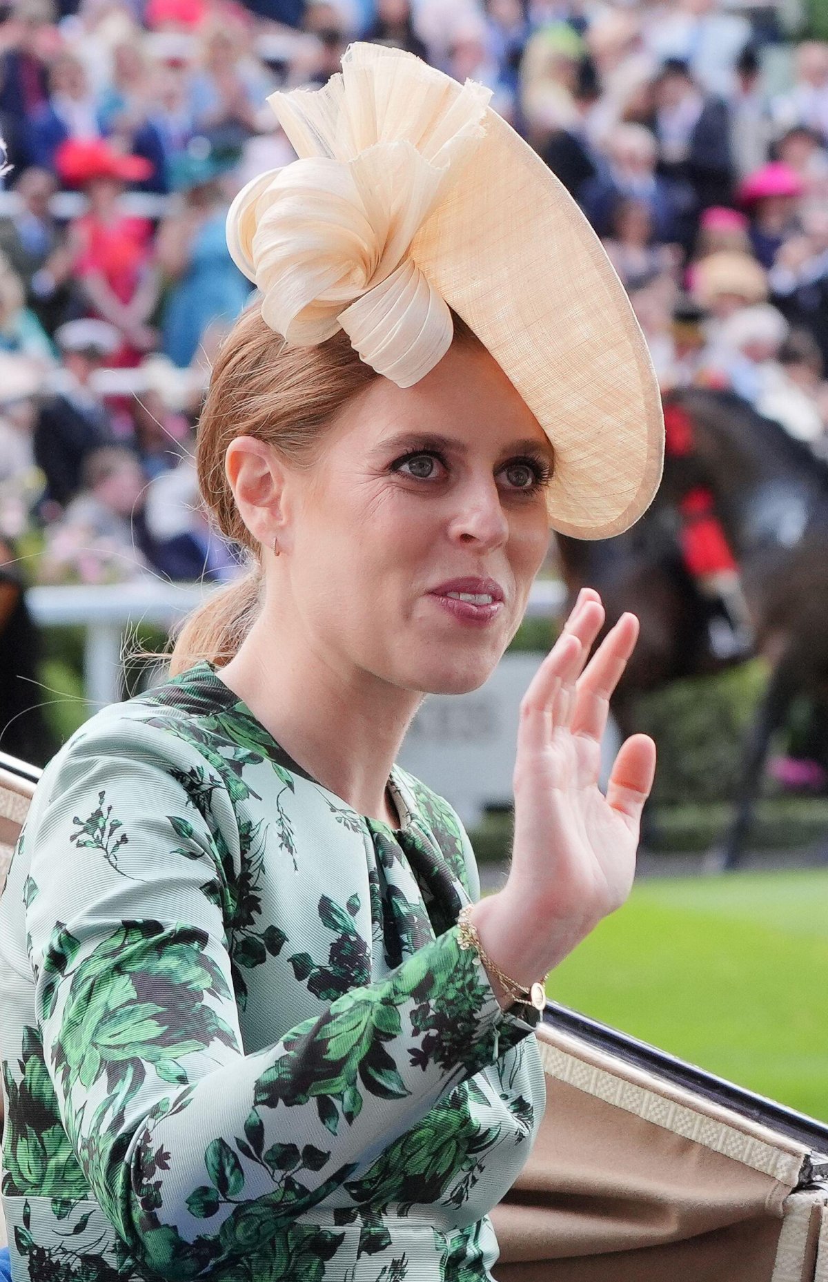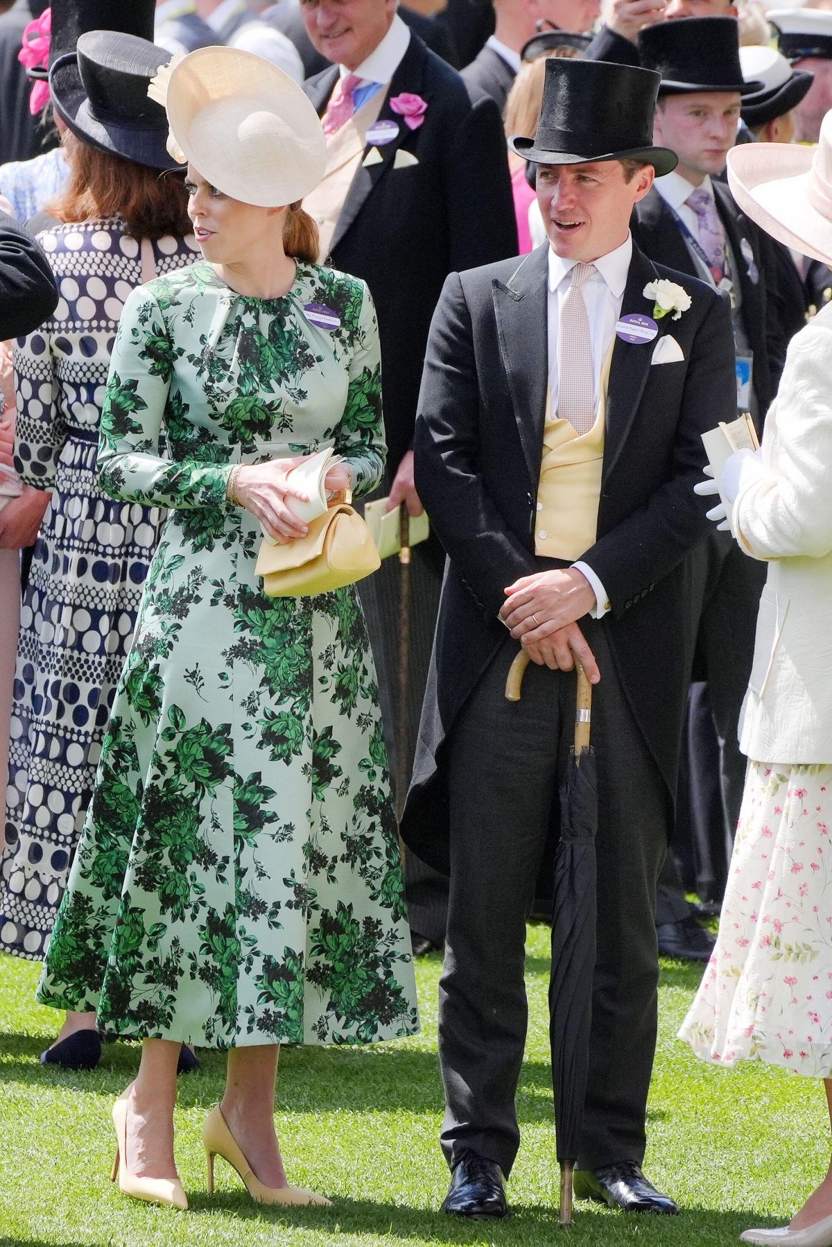 Princess Beatrice was lovely in a green floral dress with ivory accessories for day four of the races.