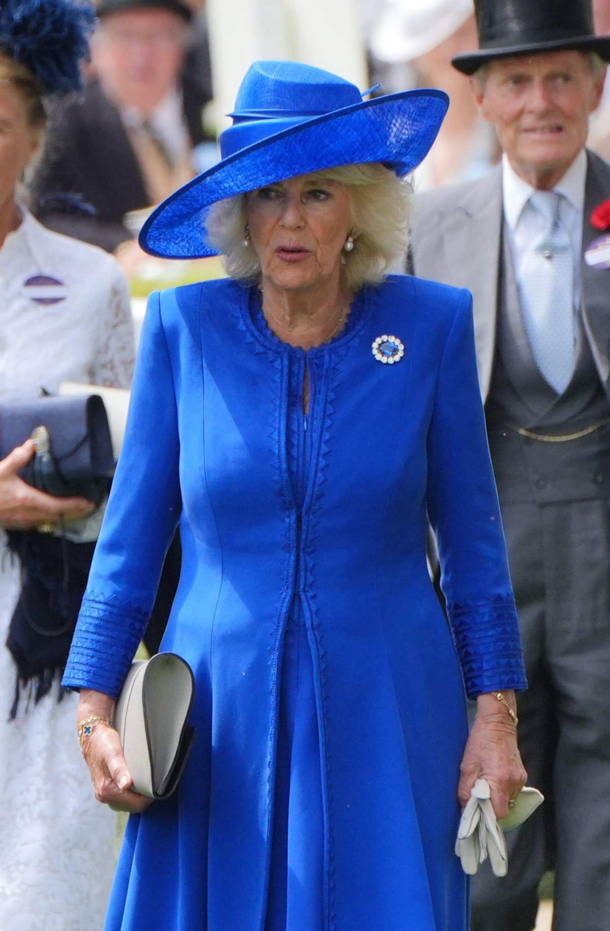 Queen Camilla also wore a jewel linked to the Saxe-Coburg and Gotha family for the first day of Royal Ascot. Her diamond and sapphire brooch is the famous jewel given to Queen Victoria by Prince Albert on the night before their royal wedding in 1840.