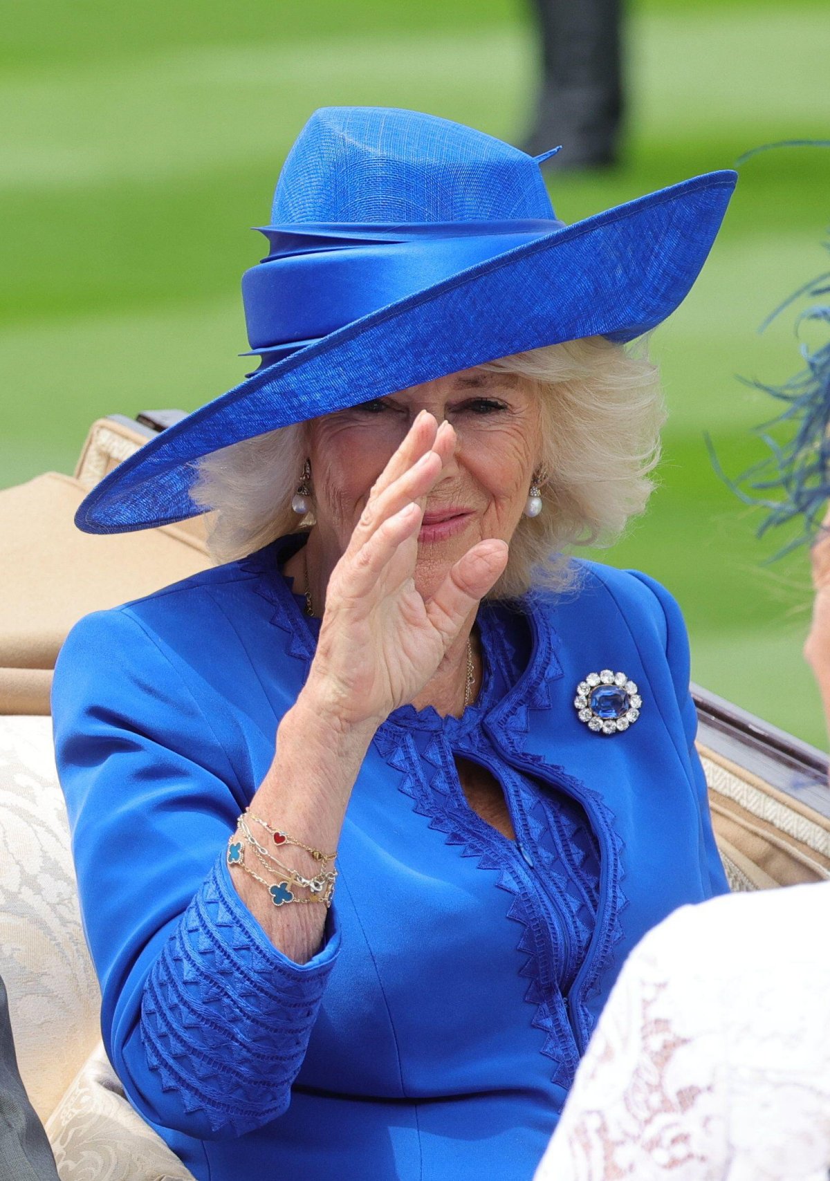 Camilla also wore her usual necklaces and bracelets with her Royal Ascot ensemble on Tuesday.