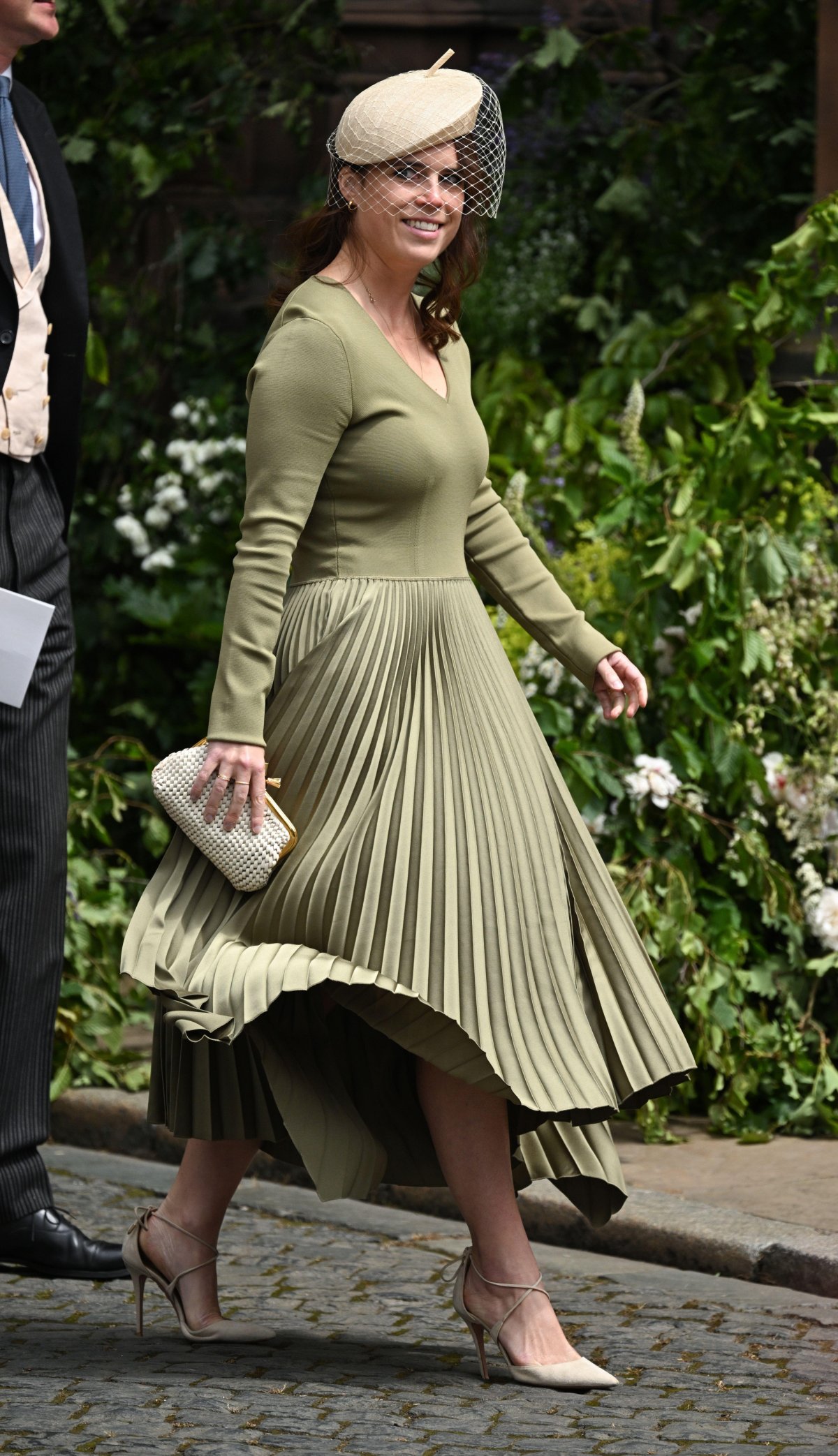 And Princess Eugenie, who was one of Olivia’s classmates at Marlborough College, was also in attendance. She wore subtle gold jewelry with her olive green ensemble for the occasion.