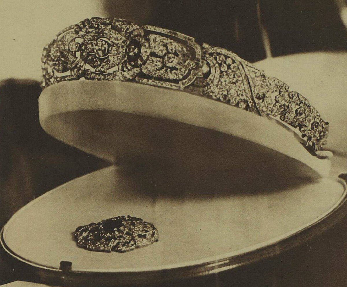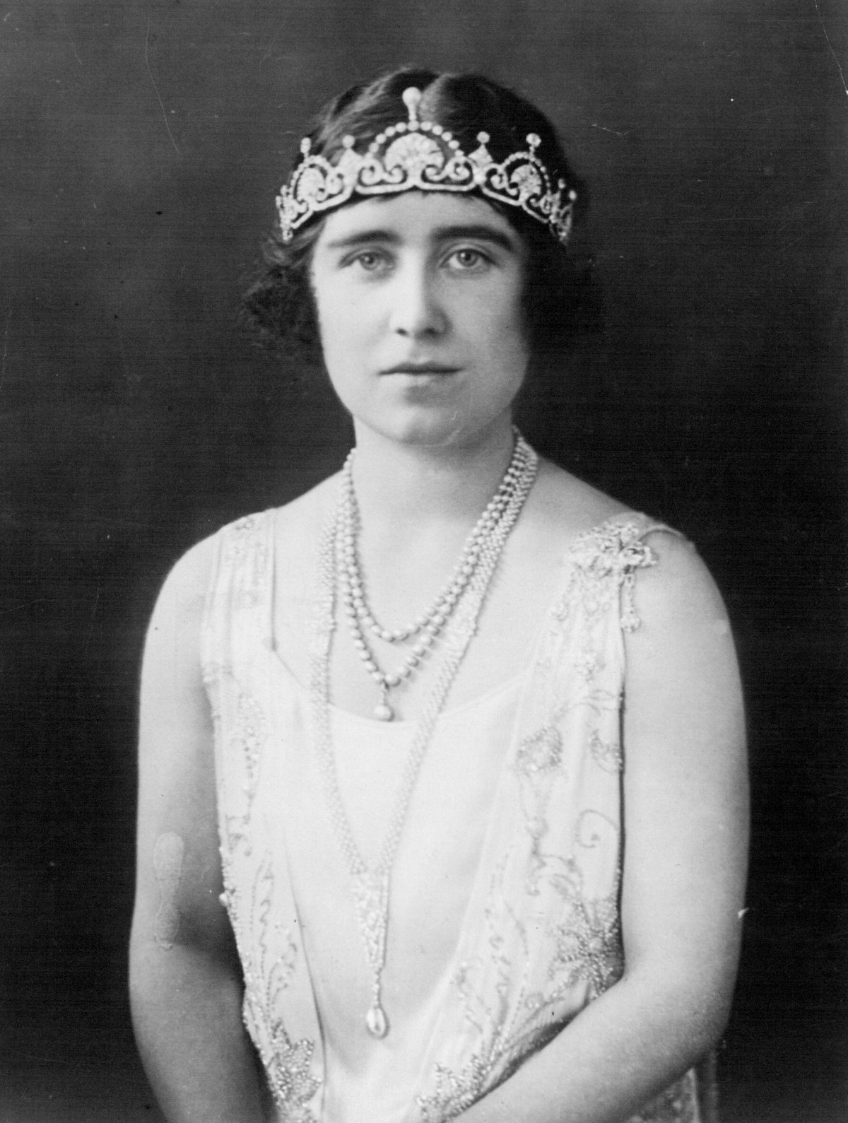 The Lotus Flower Tiara was made in 1923 for Queen Elizabeth the Queen Mother. She had the tiara made by repurposing a meander and festoon necklace given to her as a wedding present by her husband, King George VI, just a few months earlier. She wears the tiara in an early portrait above.