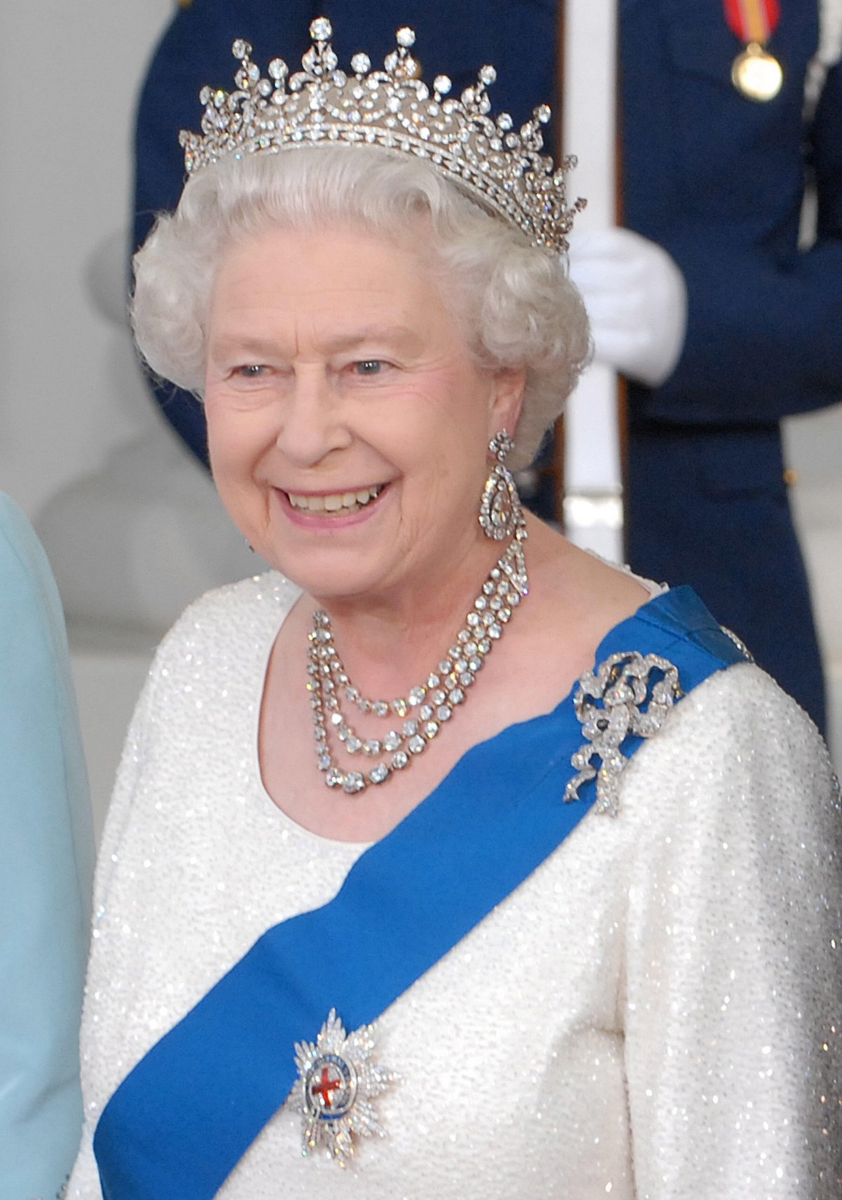 One particularly memorable outing for the necklace took place in May 2007, when the late Queen paired it with the Girls of Great Britain & Ireland Tiara, as well as diamond earrings and the Lover’s Knot Brooch that belonged to Queen Mary, for a state dinner at the White House in Washington, D.C.