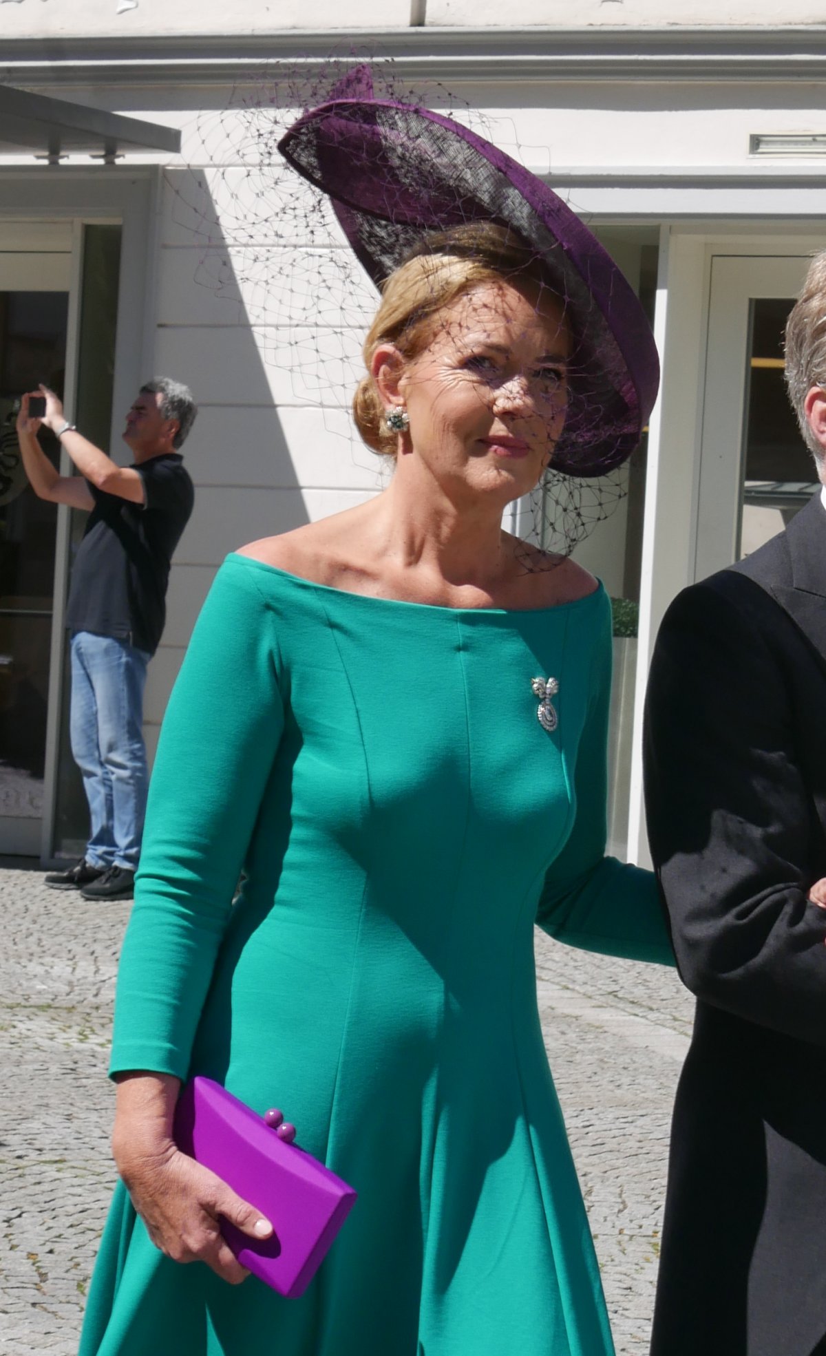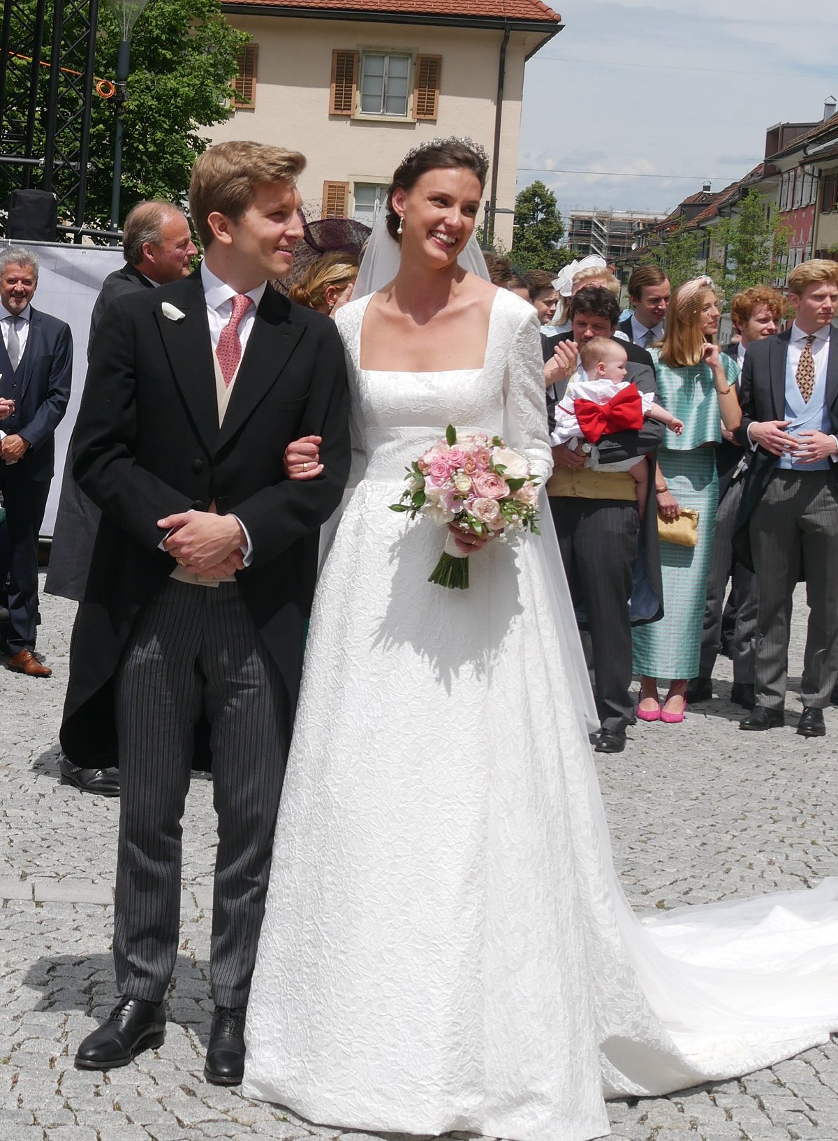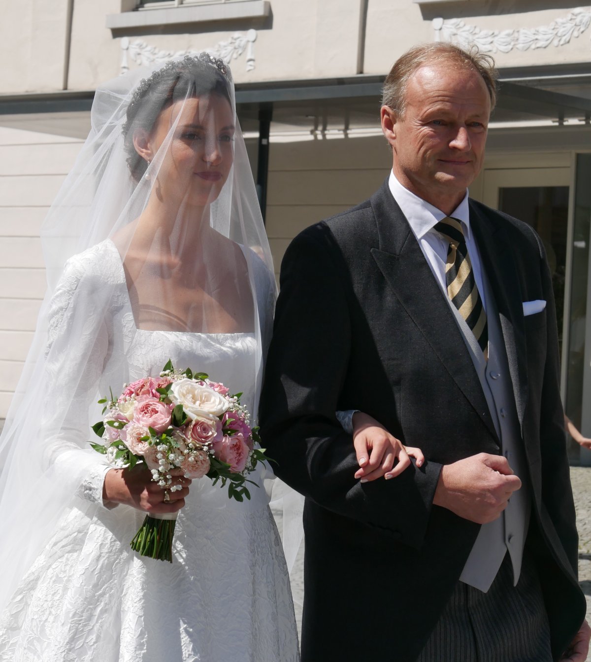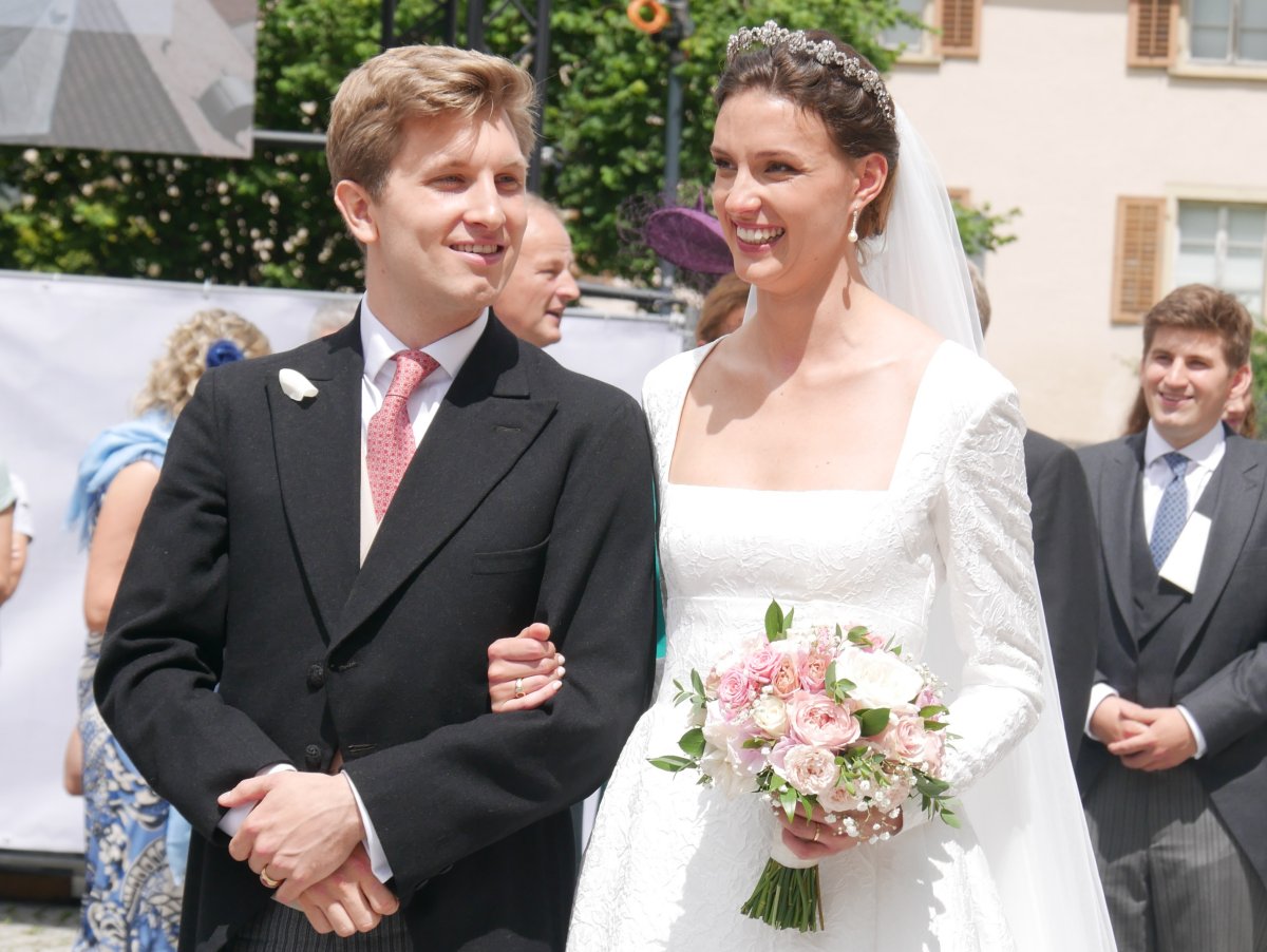 Countess Leonie arrived for the wedding ceremony on the arm of her father, Count Franz Clemens, who is a direct descendant of the Habsburg family. His great-great-grandparents are Emperor Franz Josef and Empress Elisabeth of Austria. He’s descended from their beloved youngest daughter, Archduchess Marie Valerie, whose marriage to a third cousin, Archduke Franz Salvator, was notable because it was a love match rather than a dynastic one.