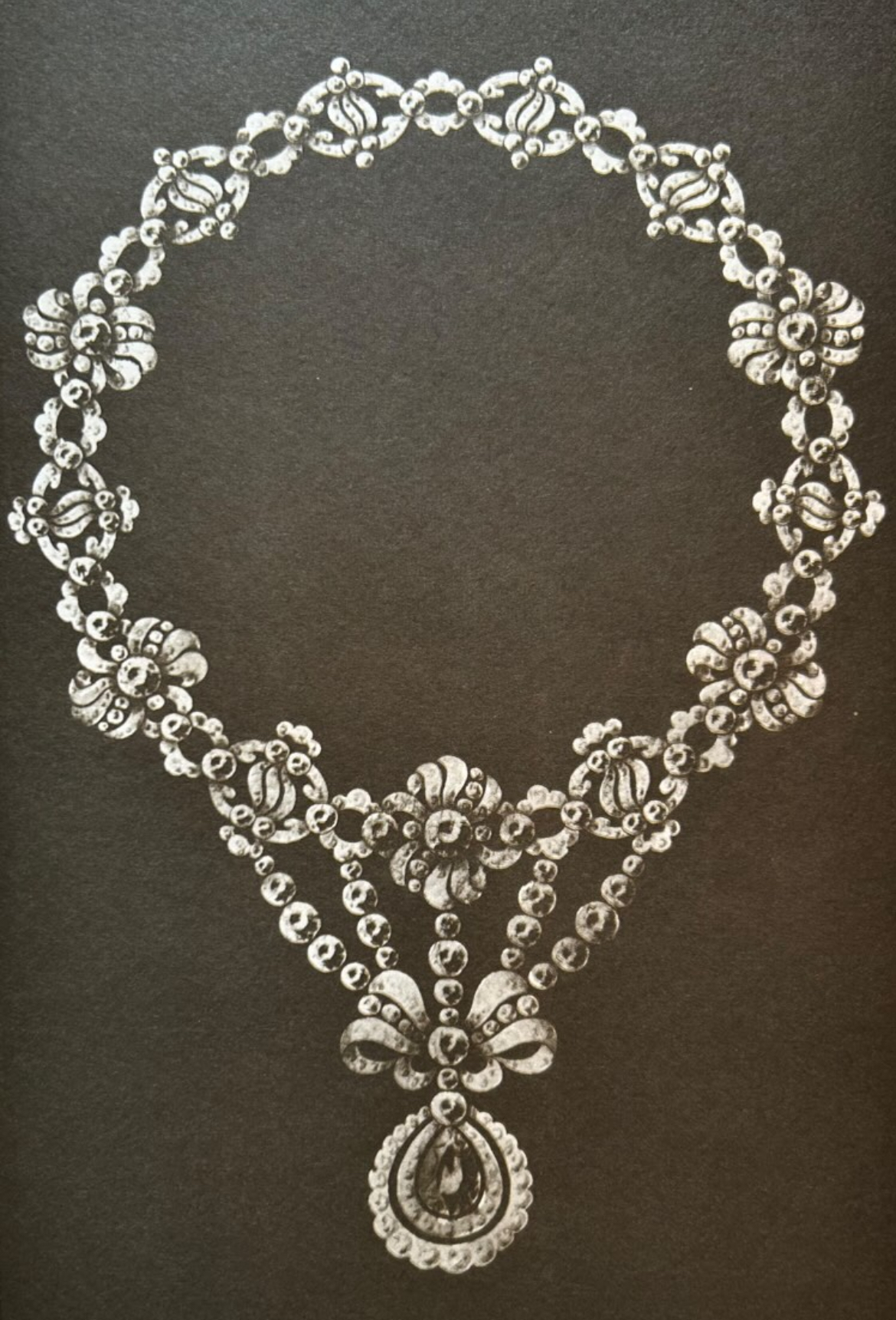 After I published this article, the good people at Köchert reached out to share this lovely image of the necklace’s original design, which shows both the section mounted on the tiara frame and the pendant.