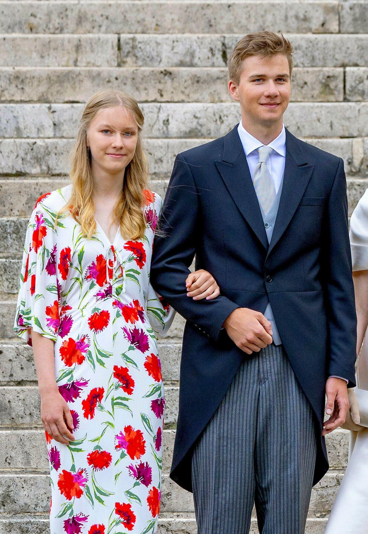 Princess Eleonore also went for a brightly-colored dress for the Te Deum service. UFO No More tells us that the floral dress comes from Diane von Furstenberg. As usual, the young princess kept her jewelry very minimal, wearing a pair of delicate earrings that faded into her hair.