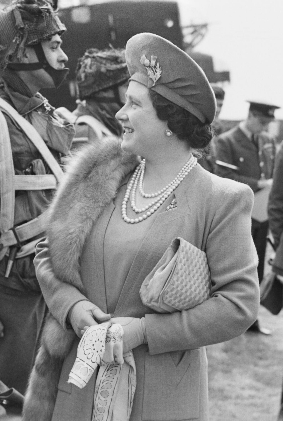 For years, the brooch was a favorite of Queen Elizabeth the Queen Mother. Above, she wears it pinned to her hat as she visits with paratroopers ahead of the D-Day landings in 1944.