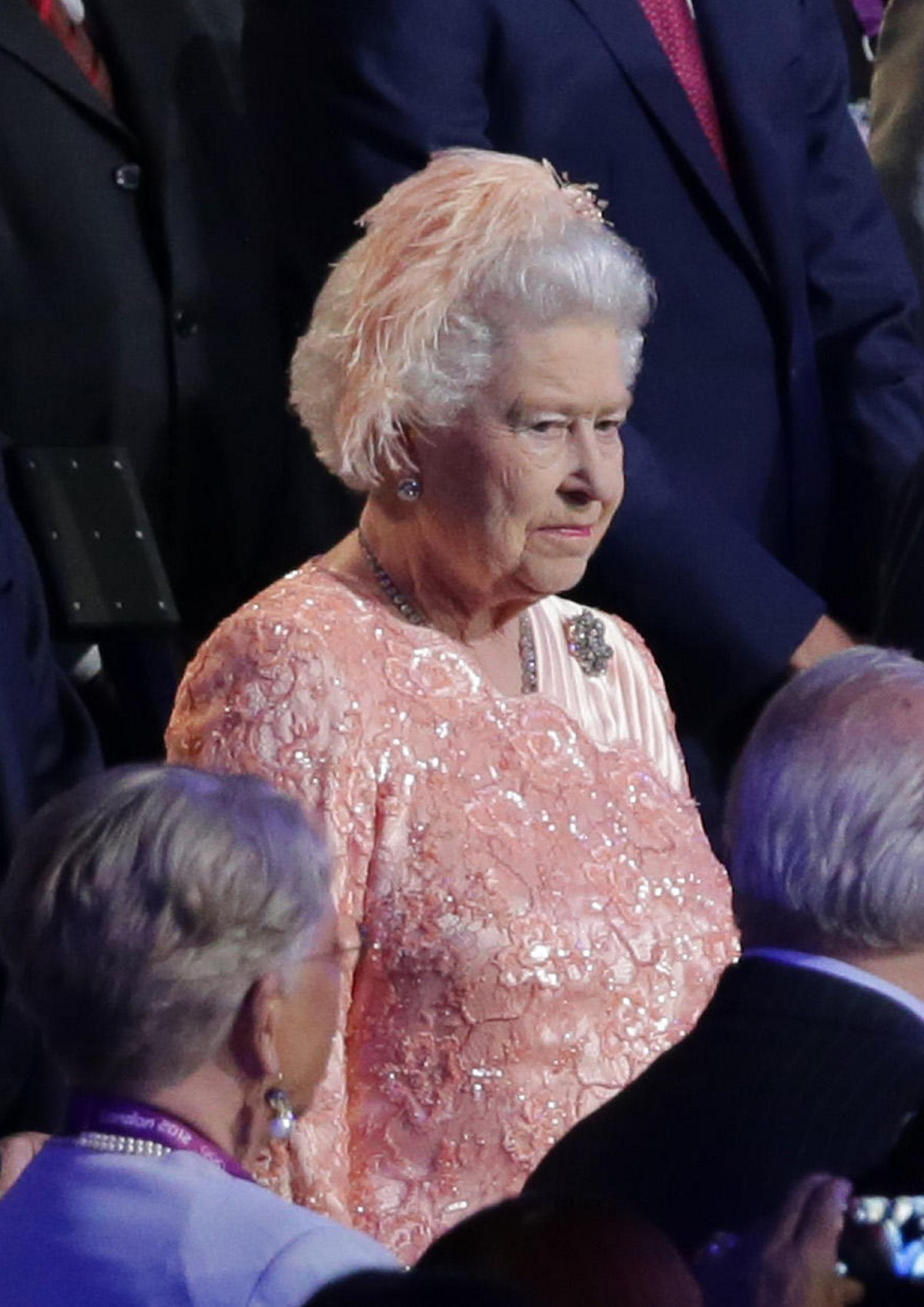 The small smile on the Queen’s face as the people in the stadium gave her a standing ovation was evident. She had arrived for the ceremony wearing the same dress, hat, and jewels that she’d worn while filming at Buckingham Palace with Daniel Craig. The peach cocktail dress and matching headpiece had been made for the Queen by her dresser and personal assistant, Angela Kelly. Both Julia McKenzie and Gary Connery had also worn copies of the outfit for their portions of the film.