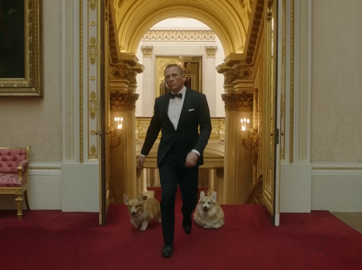 Meanwhile, Daniel Craig had arrived in his full 007 tuxedo to film the segment. BBC cameras followed him as he stepped out of an iconic black taxi cab and headed inside the palace. Handel’s “The Arrival of the Queen of Sheba” played merrily in the background as Bond passed by a palace tour (featuring children visiting from Brazil, the host country for the next Summer Games) and climbed the palace stairs with a corgi escort.