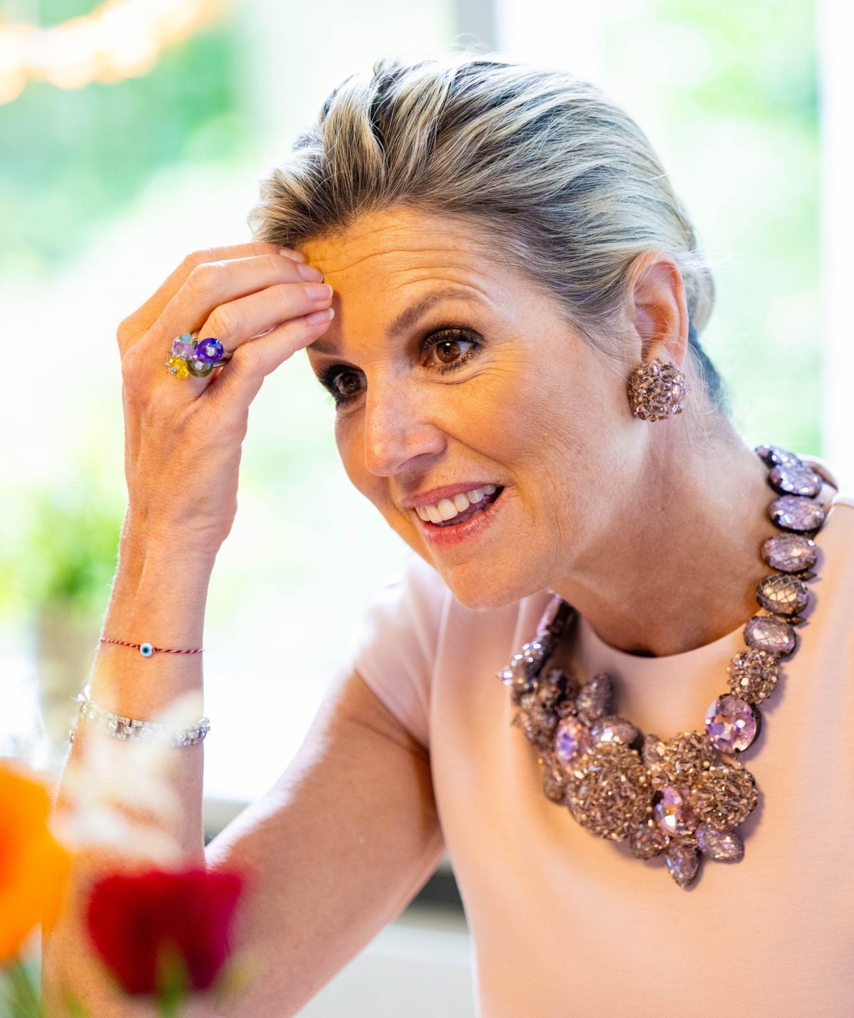 Maxima paired the new earrings and necklace with pieces that she’s had since the early years of her marriage. On her right wrist, she wore her diamond wedding bracelet.