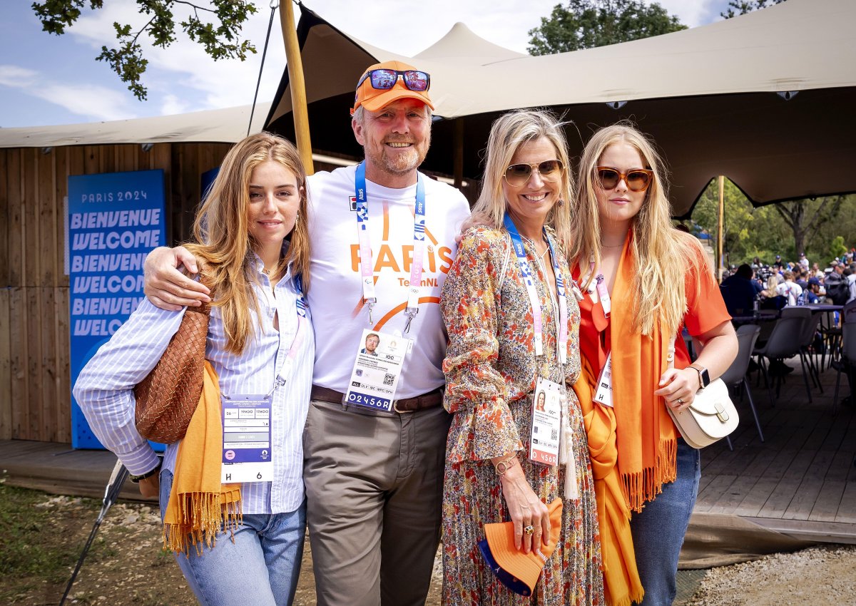 Queen Maxima and the rest of the Dutch royal family kept the orange color theme going throughout their appearances in Paris. On July 28, King Willem-Alexander and Queen Maxima were joined by two of their daughters, Princess Amalia and Princess Alexia, as they attended the mountain bike cross-country finals. (Princess Ariane, the youngest of their daughters, is currently studying at the United World College of the Adriatic in Italy. One eagle-eyed Dutch journalist spotted Maxima video chatting with Ariane during the opening ceremony.)