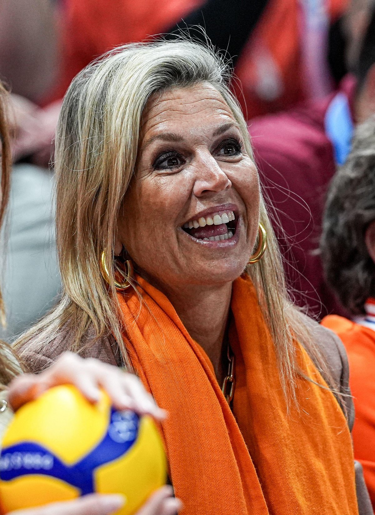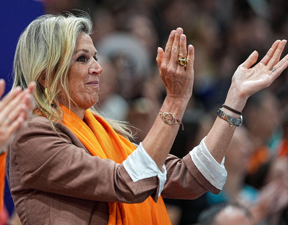 King Willem-Alexander, Queen Maxima, Princess Amalia, and Princess Alexia were all on hand again the following day to attend a women’s volleyball match between the Netherlands and Turkiye. (Turkiye ended up winning three sets to two.) The entire royal family was decked out in orange and TeamNL gear for the match.