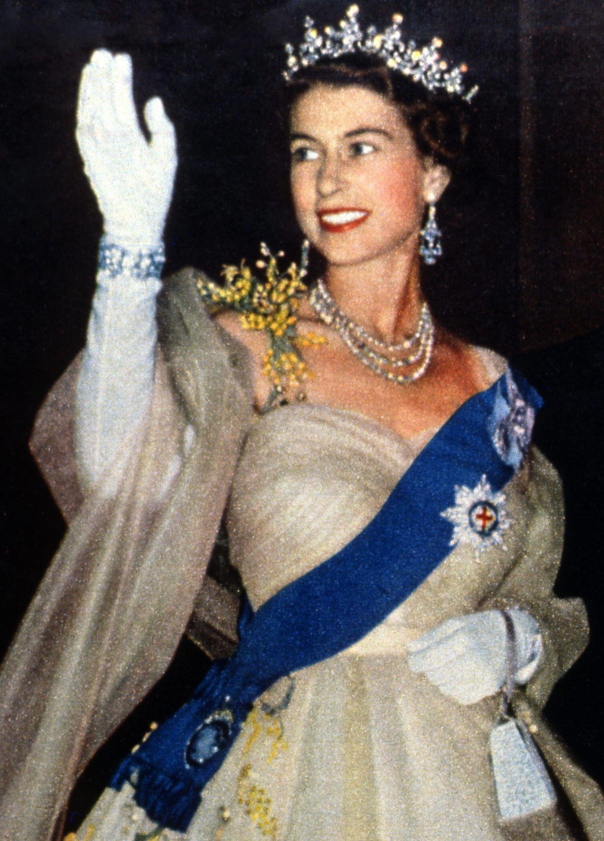Elizabeth finished off the jewelry look with the Edinburgh Wedding Bracelet, a gift from her beloved Prince Philip, and a diamond evening watch. She also wore the sash and star of the Order of the Garter and the Royal Family Orders of her grandfather, King George V, and her father, King George VI. All of the jewels worn by Elizabeth for the state banquet in Sydney have appeared on members of the family in the years since her passing. Queen Camilla has worn the Girls of Great Britain & Ireland Tiara more than once, while the earrings, necklace, and bracelet have all been worn by the Princess of Wales.