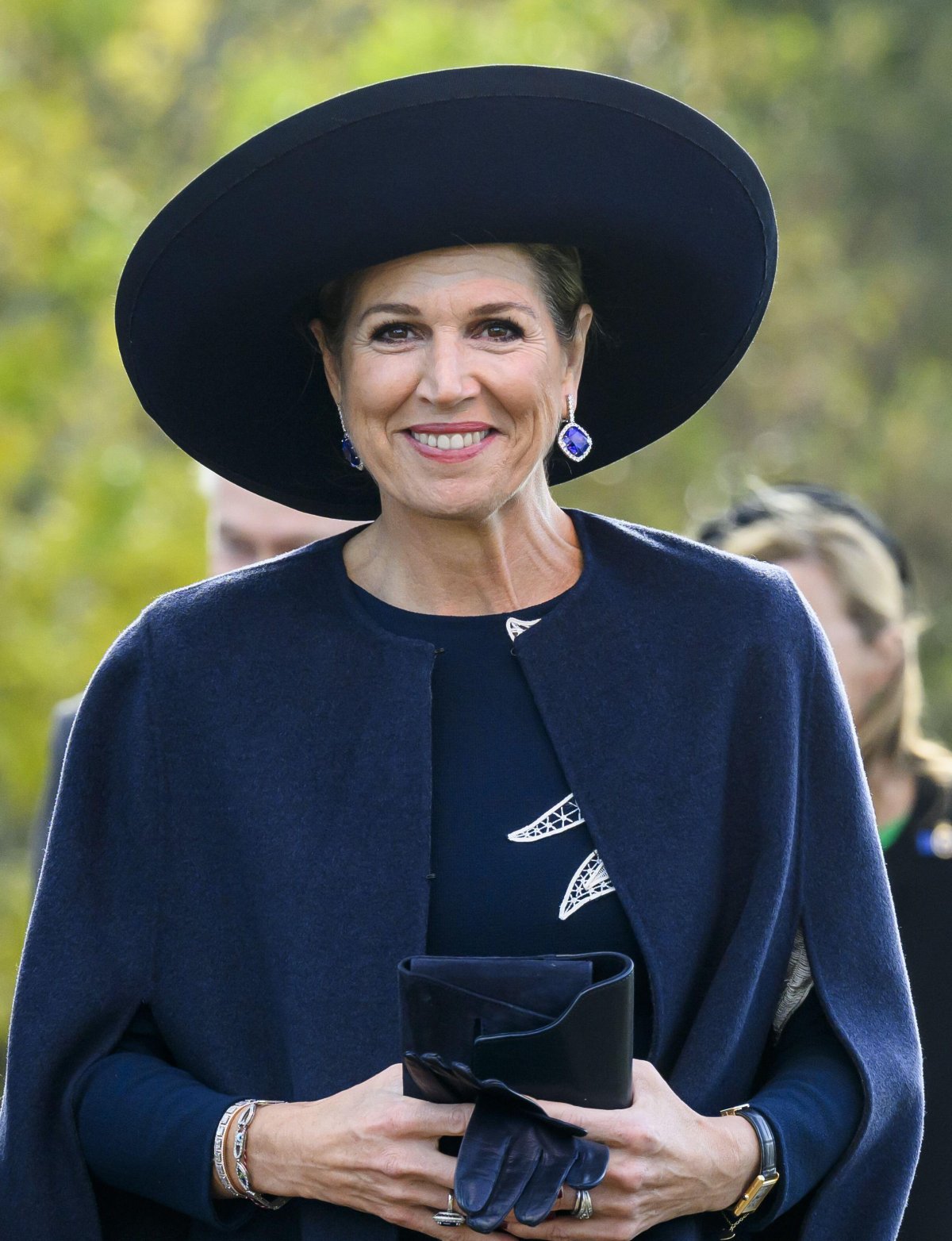 Máxima also wore the diamond and tanzanite ring from the demi-parure on her right hand, and she finished off the jewelry look with her engagement and wedding rings on her left hand.