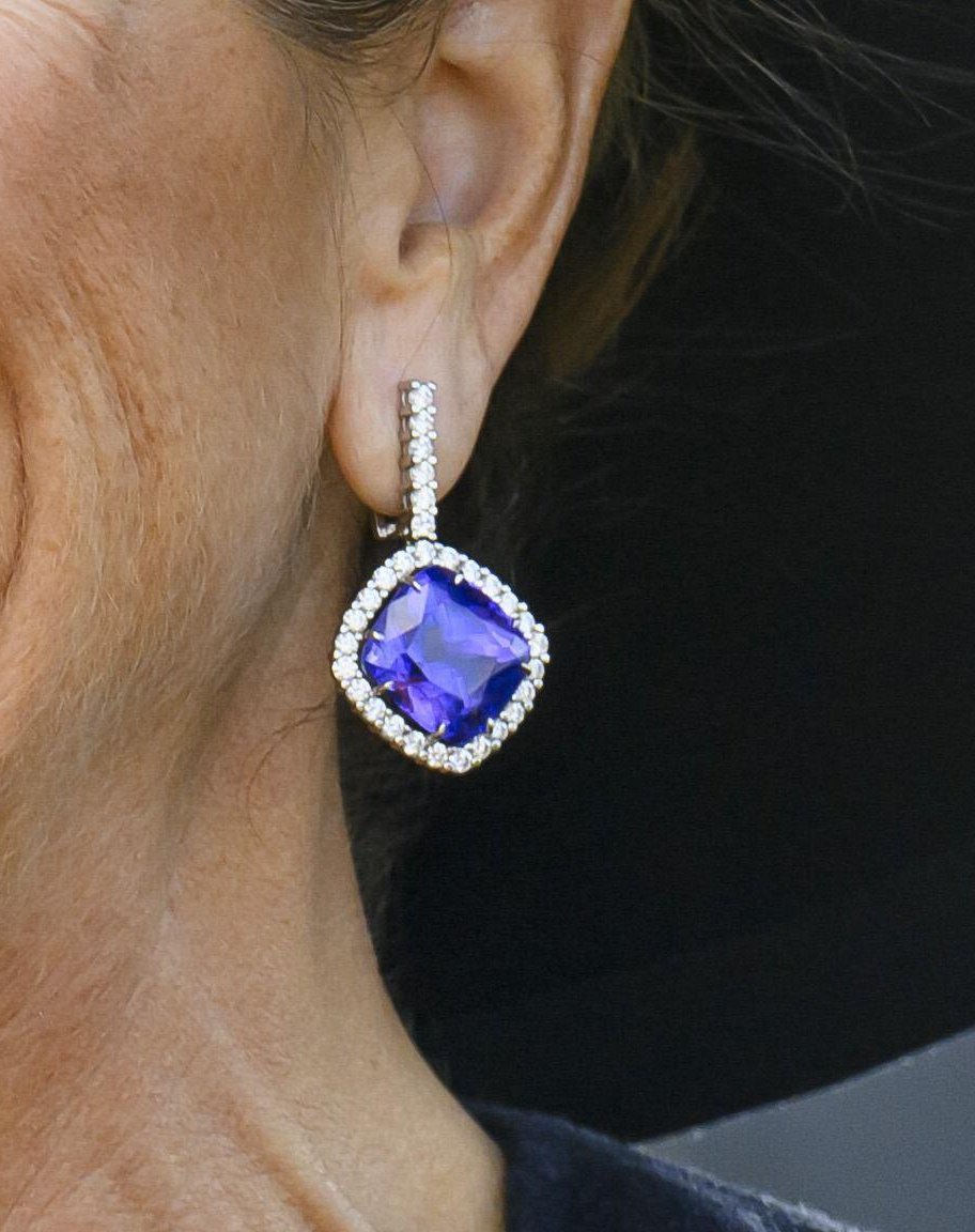 On Tuesday, Queen Máxima brought out her gorgeous suite of tanzanite jewelry as she opened a new factory in the Netherlands.