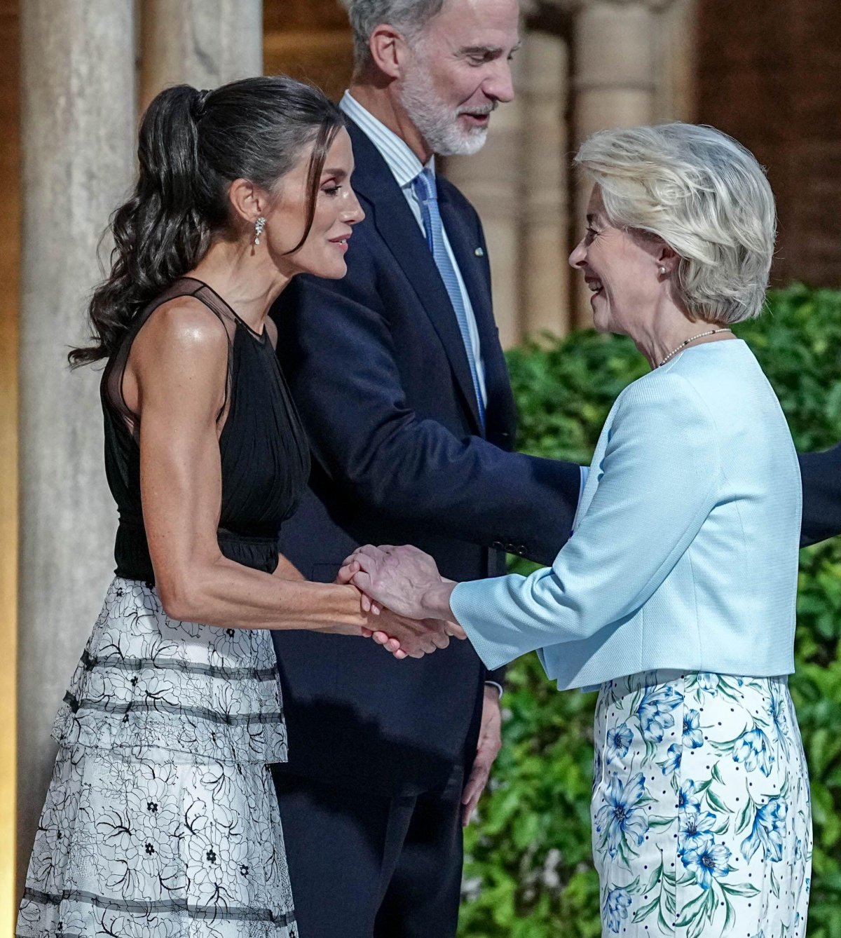 More recently, we saw her wear the earrings last October as she and King Felipe welcomed European heads of state and government to a reception at the Alhambra. (She clearly likes to wear the earrings in October!)