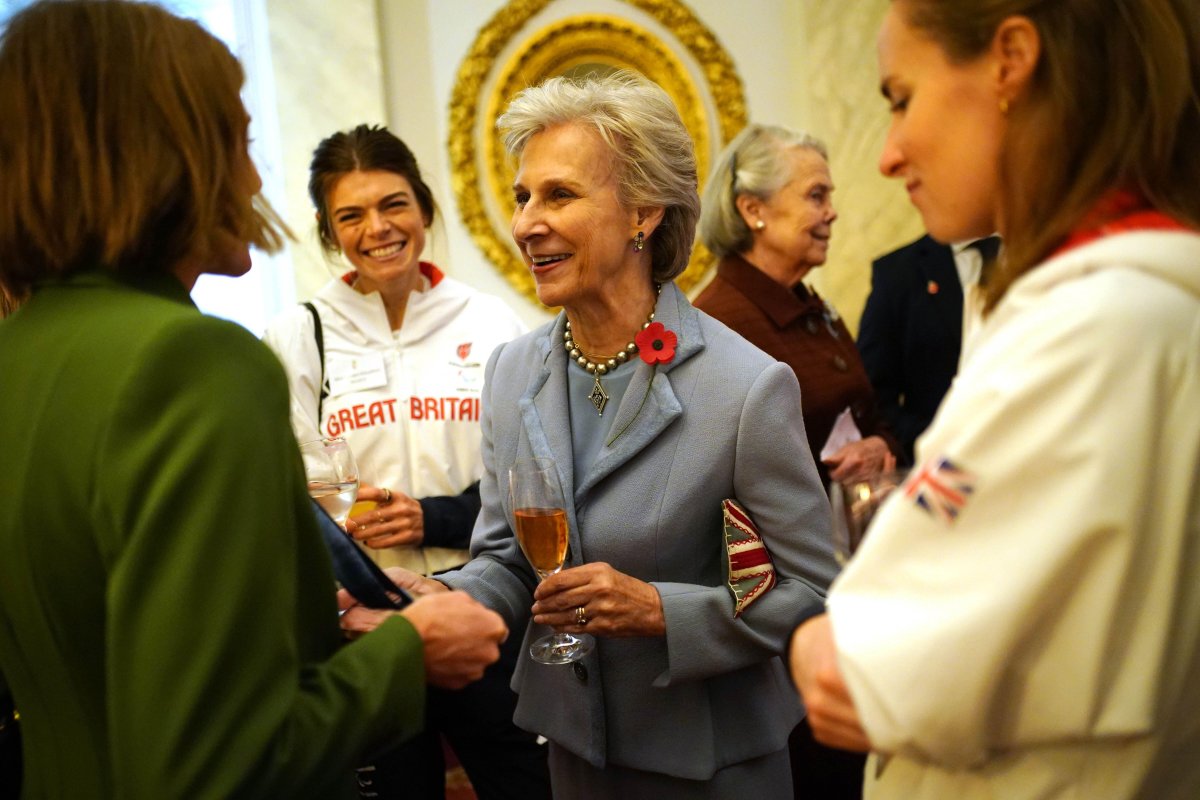 Other royals, including the King and the Princess Royal, were at the reception as well. Princess Anne wore her mother’s iconic three-stranded pearl necklace with pearl earrings, a Team GB Olympic pin, and a poppy brooch.