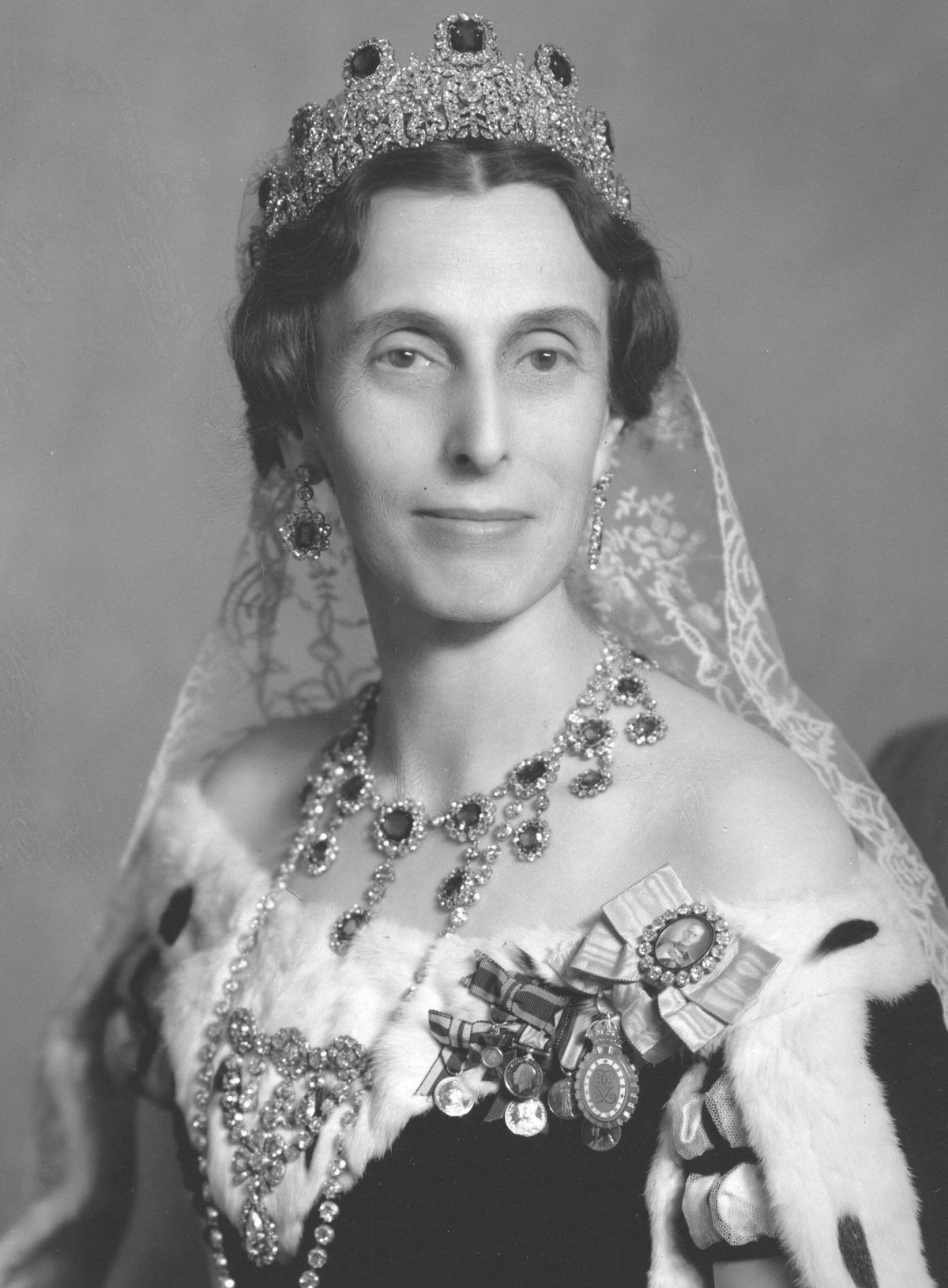 The Leuchtenberg Sapphires take their name from their first owner, Princess Augusta, Duchess of Leuchtenberg, the mother of Queen Josefina of Sweden and Norway. August received the jewels from her mother-in-law, Empress Joséphine of France, to celebrate the birth of Augusta’s first son, Prince Auguste, in 1810. Queen Josefina brought her mother’s sapphires to Sweden, where they’ve resided ever since. Above, Queen Louise wears the suite in a gala portrait taken in the 1930s, during her tenure as crown princess.