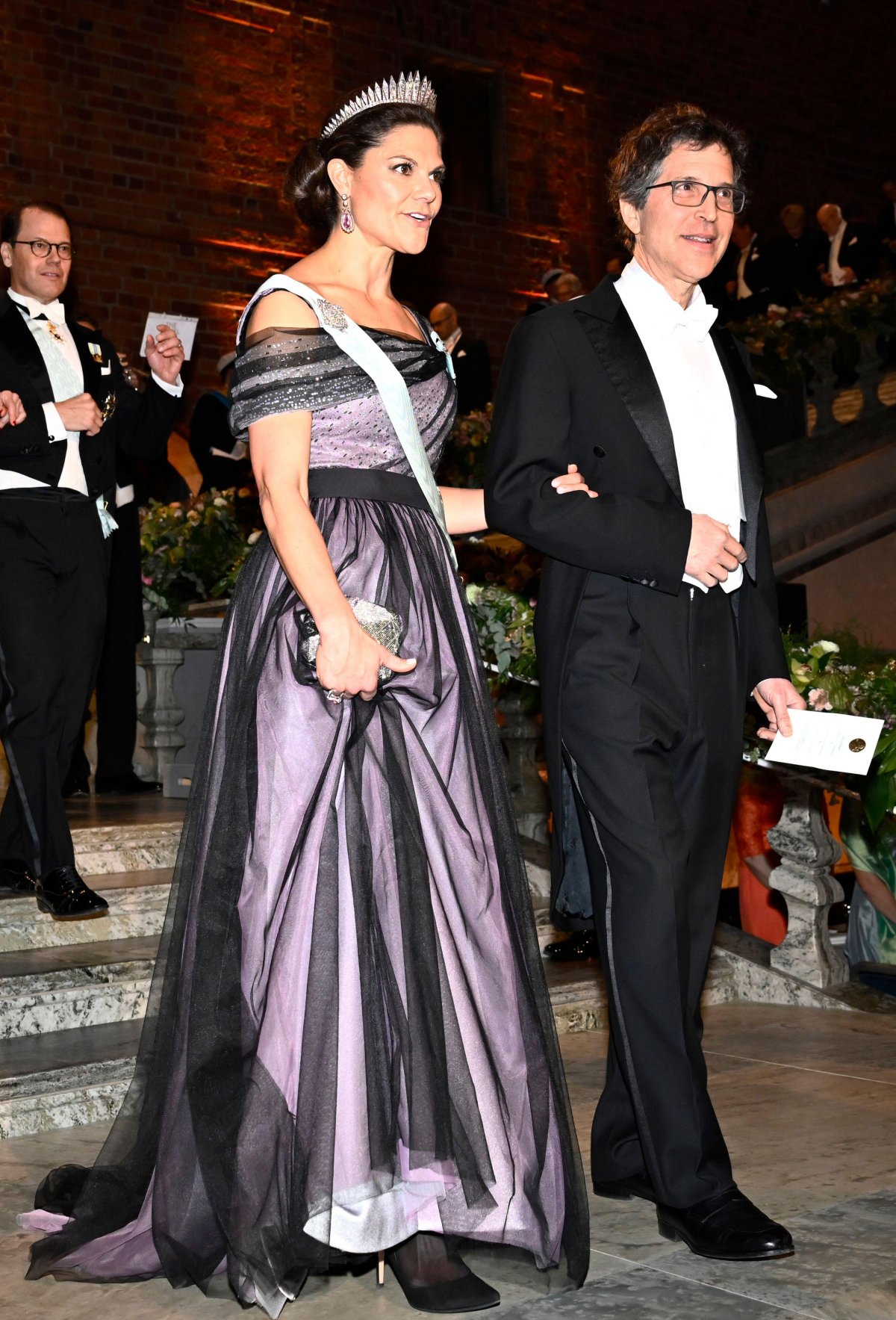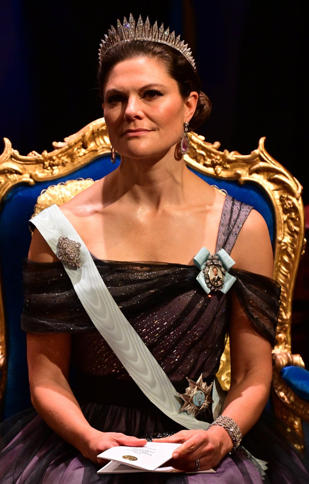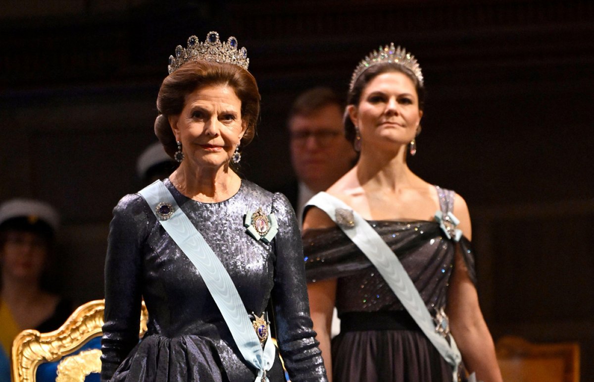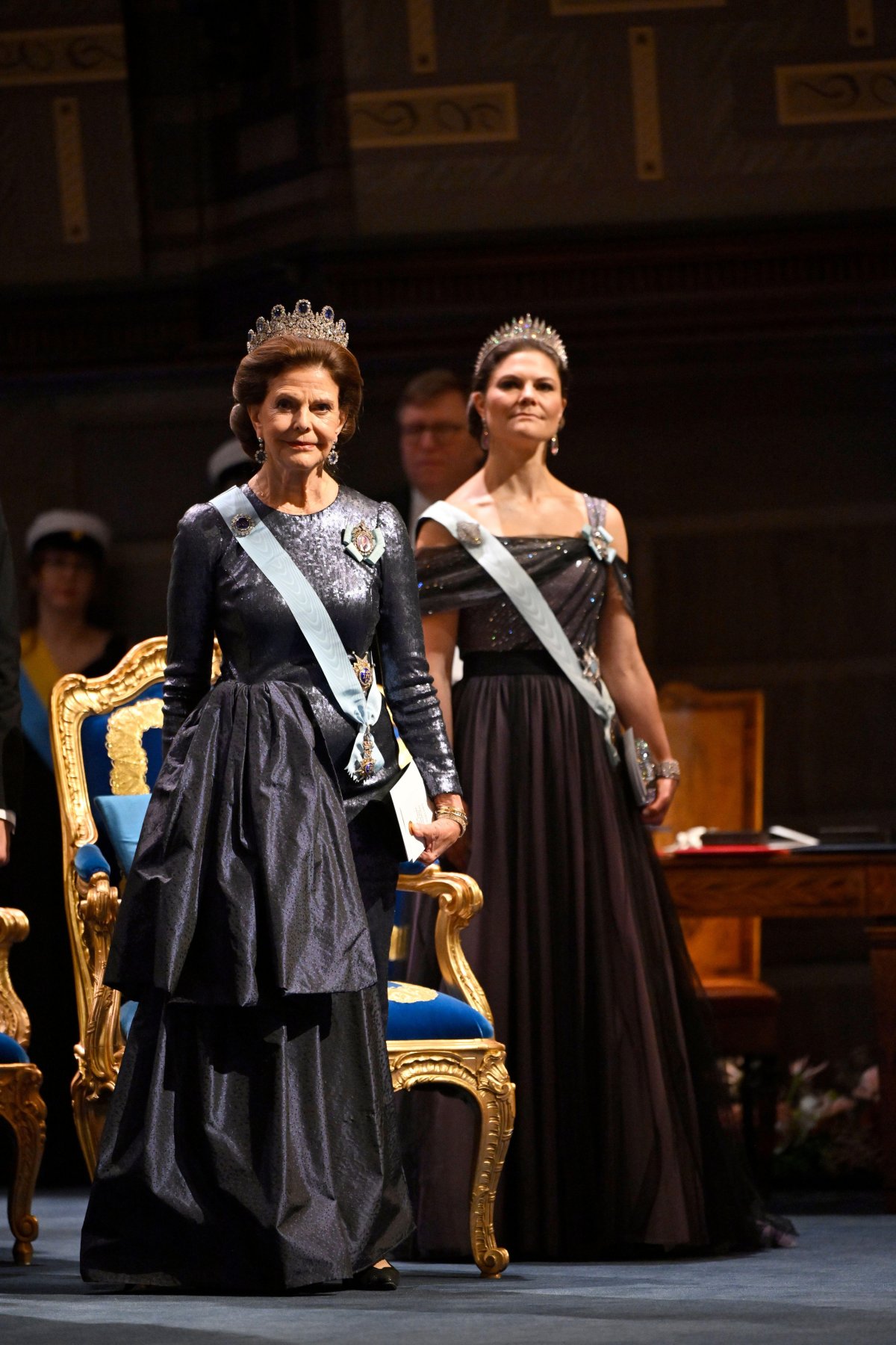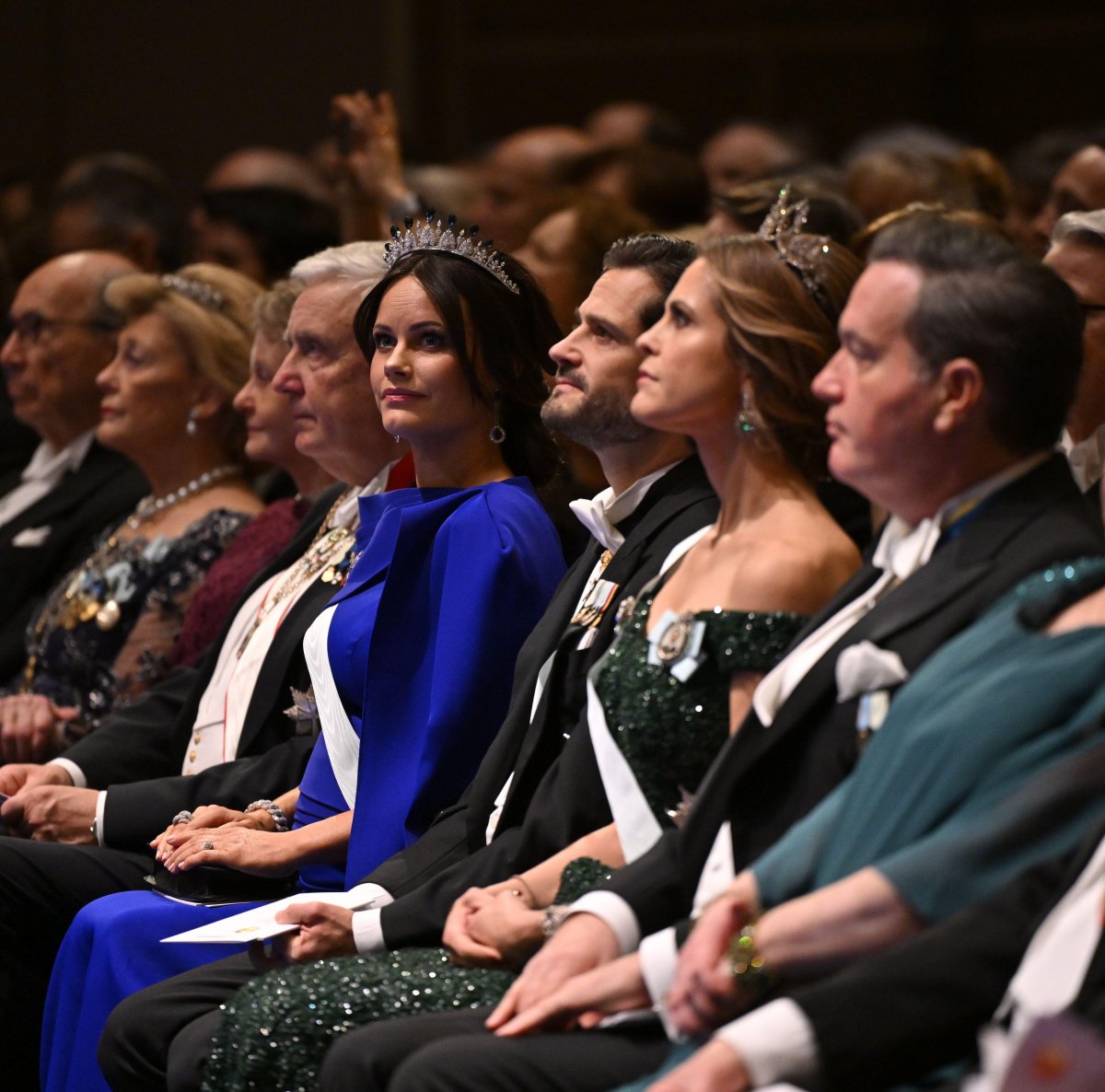 For the presentation of this year’s Nobel Prizes (with the exception of the Peace Prize, which is presented in Oslo), King Carl XVI Gustaf and Queen Silvia of Sweden were joined on stage at Stockholm’s Concert Hall by their daughter, Crown Princess Victoria, and son-in-law, Prince Daniel.