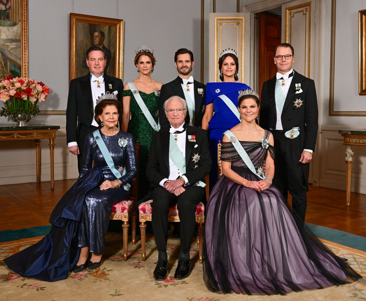 The royal family took the opportunity to take a new gala portrait photograph during the Nobel festivities on Tuesday as well, posing together in a room adorned with portraits of King Gustaf VI Adolf, Crown Princess Margareta, and Prince Gustaf Adolf.