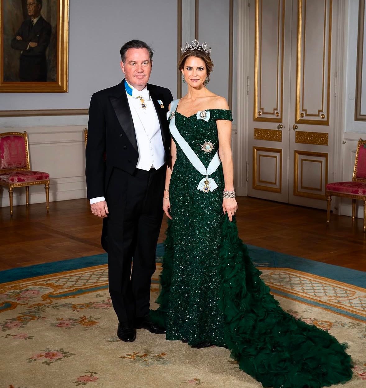 Also present for the ceremony and banquet, sparkling in a tiara, was Princess Sofia, who recently celebrated her 40th birthday. She is currently expecting her fourth child, who is due to be born in February. For the occasion, she wore a royal blue evening gown made by Soeren Le Schmidt, decorated with the Seraphim insignia and her father-in-law’s Royal Family Order. Sofia was also recently photographed in the gown for a feature published in Vogue Scandinavia.