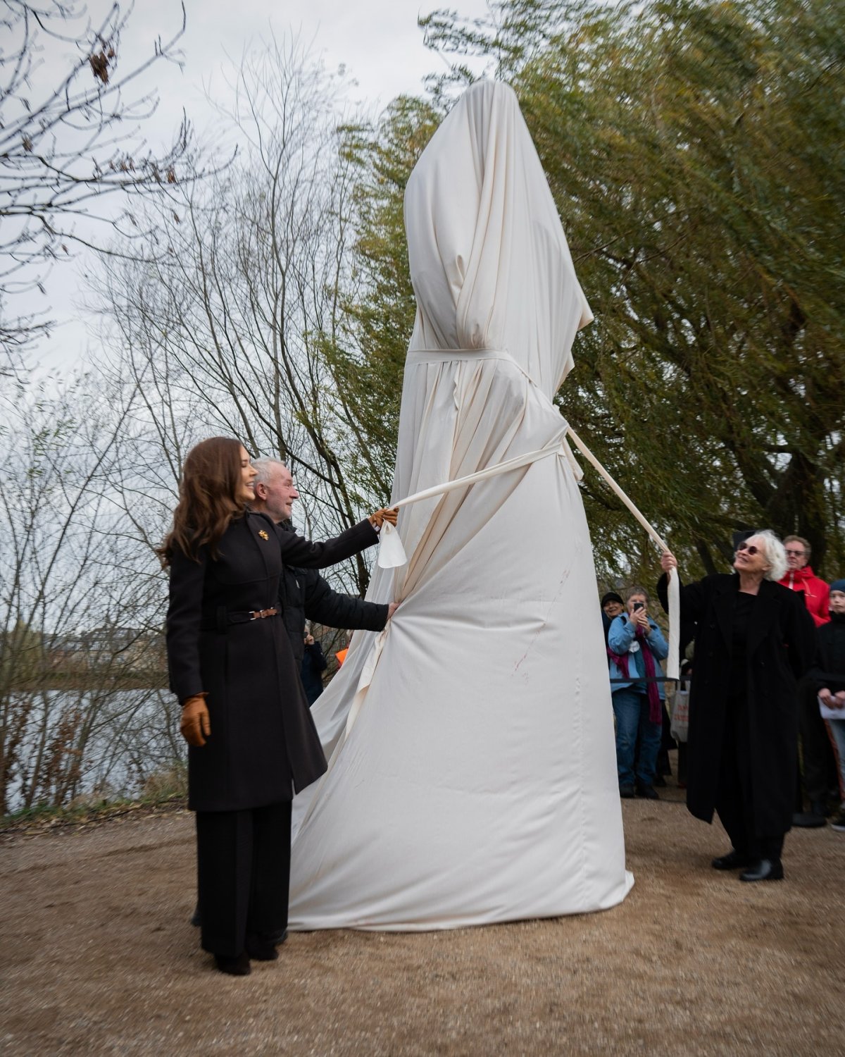 Queen Mary was in central Copenhagen on Monday, November 25 for the unveiling of a new statue honoring the legacy of another royal consort: Louise Christine Rasmussen, later known as Countess Danner. The statue is located at the intersection of two busy streets in the city center, Vester Søgade and Gyldenløvesgade.
