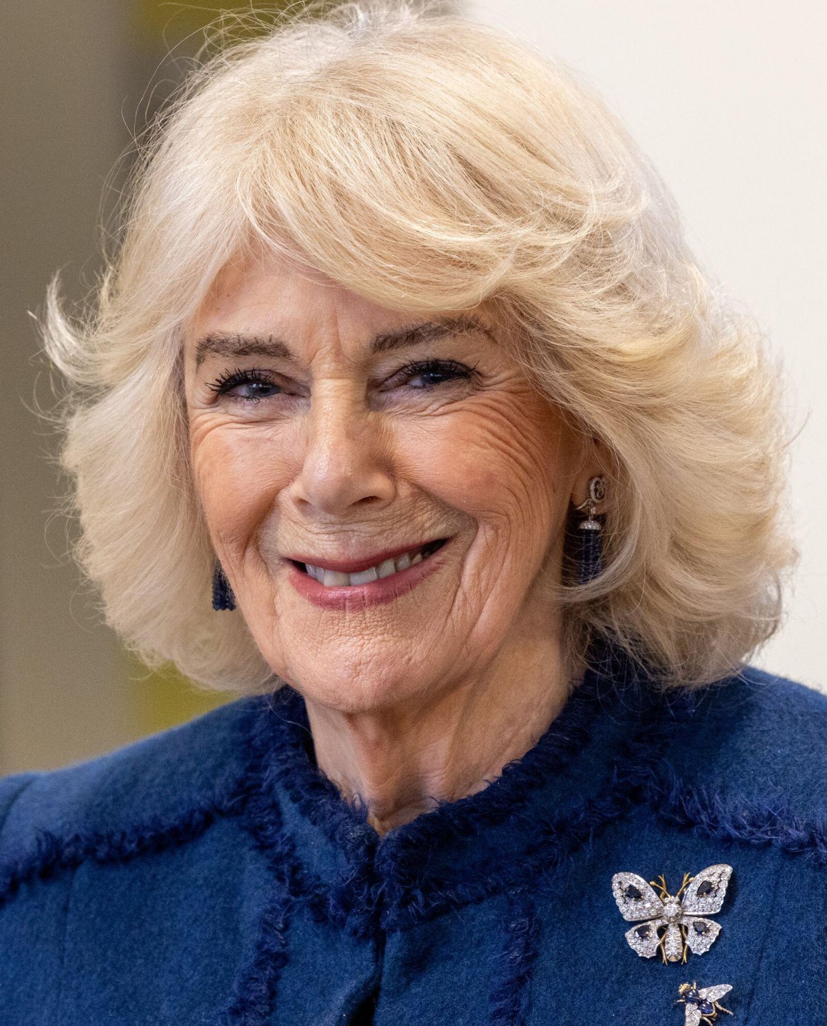 The National Theatre reception was Camilla’s second recent outing in the new earrings. Last week, she wore them with a pair of sapphire and diamond insect brooches for a visit to Middlesbrough’s International Centre.