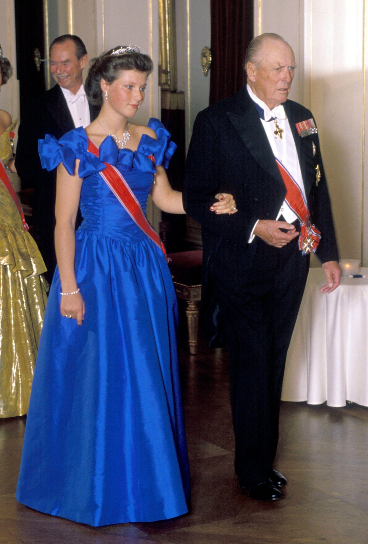 Princess Märtha Louise, the only daughter of King Harald V and Queen Sonja of Norway, celebrated her 18th birthday in September 1989. At the time, her grandfather, King Olav V, was still on the throne. He presented her with a petite diamond and pearl tiara with a modern wheat-ear design.