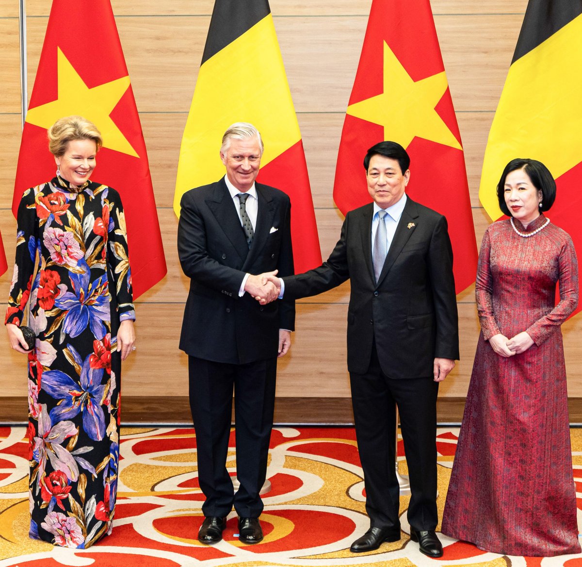 King Philippe and Queen Mathilde of the Belgians arrived in Hanoi on Tuesday. After participating in a wreath-laying ceremony at the Monument of National Heroes, the King and Queen were greeted by President Luong Cuong and his wife, Nguyen Thi Minh Nguyet, at the Presidential Palace.