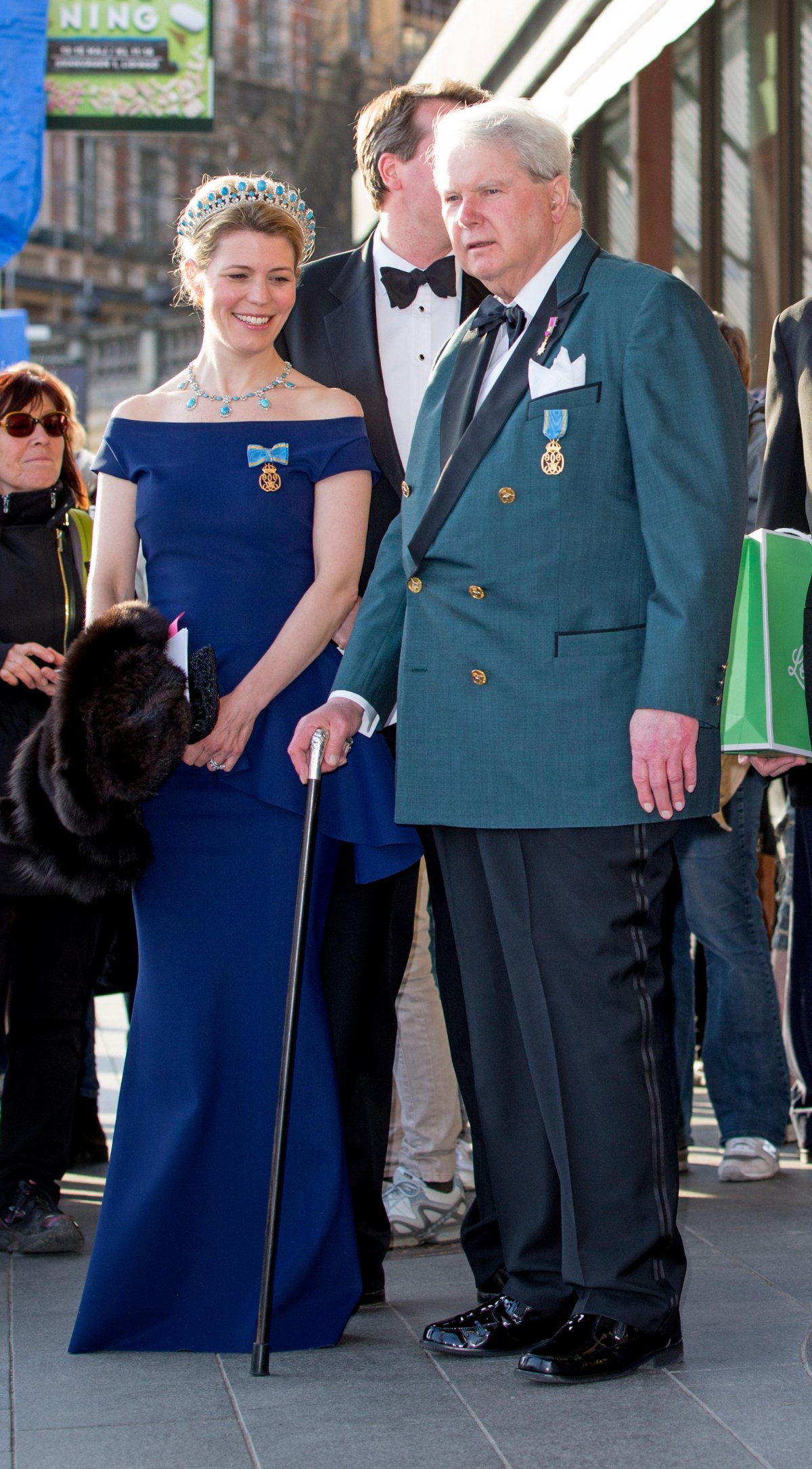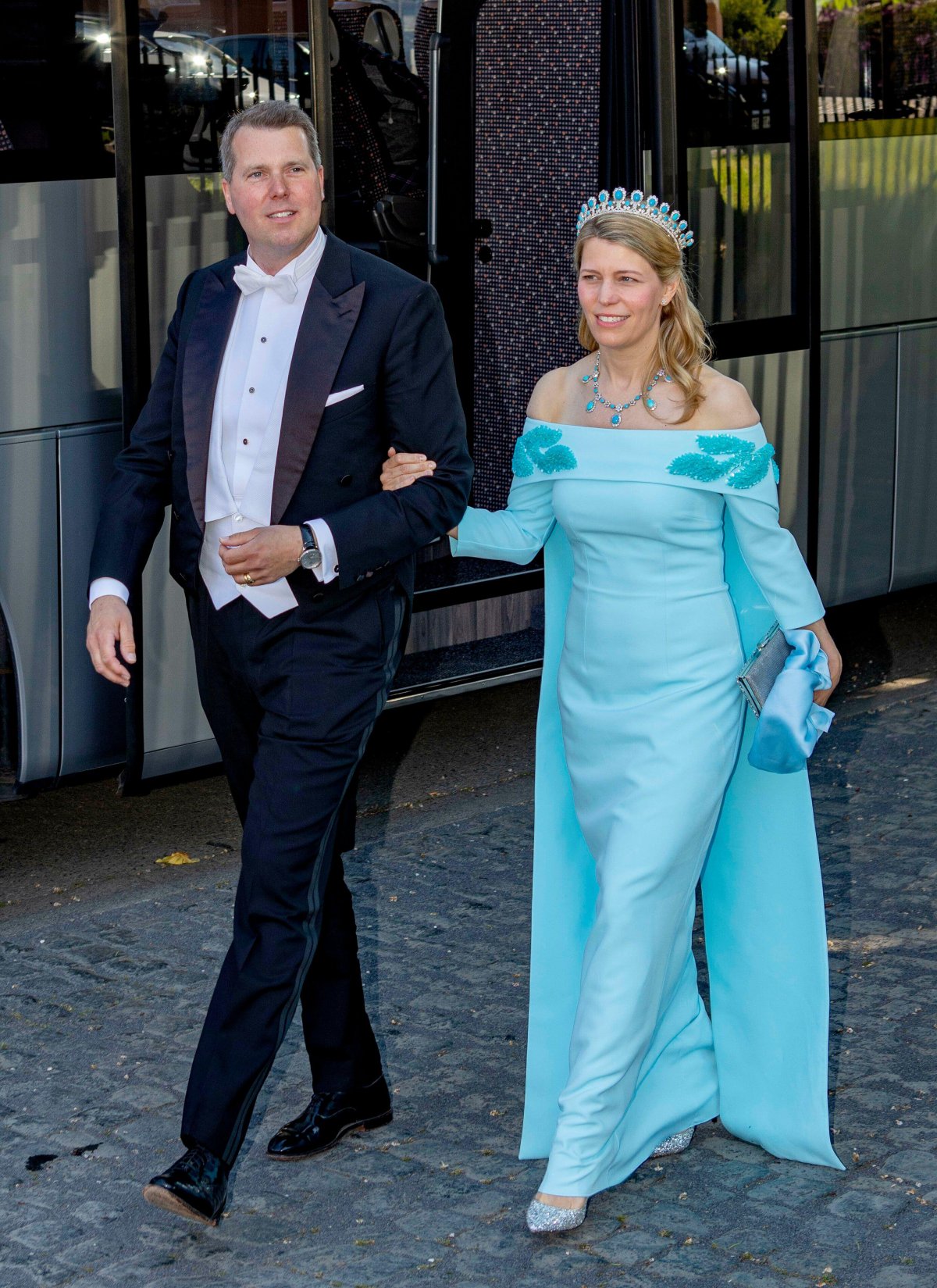 One of Kelly’s most successful outings in the turquoises came in April 2016, when she joined Andreas and Hubertus for a banquet in Stockholm celebrating King Carl XVI Gustaf’s 70th birthday. On this occasion, she wore a navy dress with an off-the-shoulder neckline, and she was able to leave the show-stealing order sash at home. Instead, she wears a medal given to guests to commemorate their attendance at the royal birthday celebration.